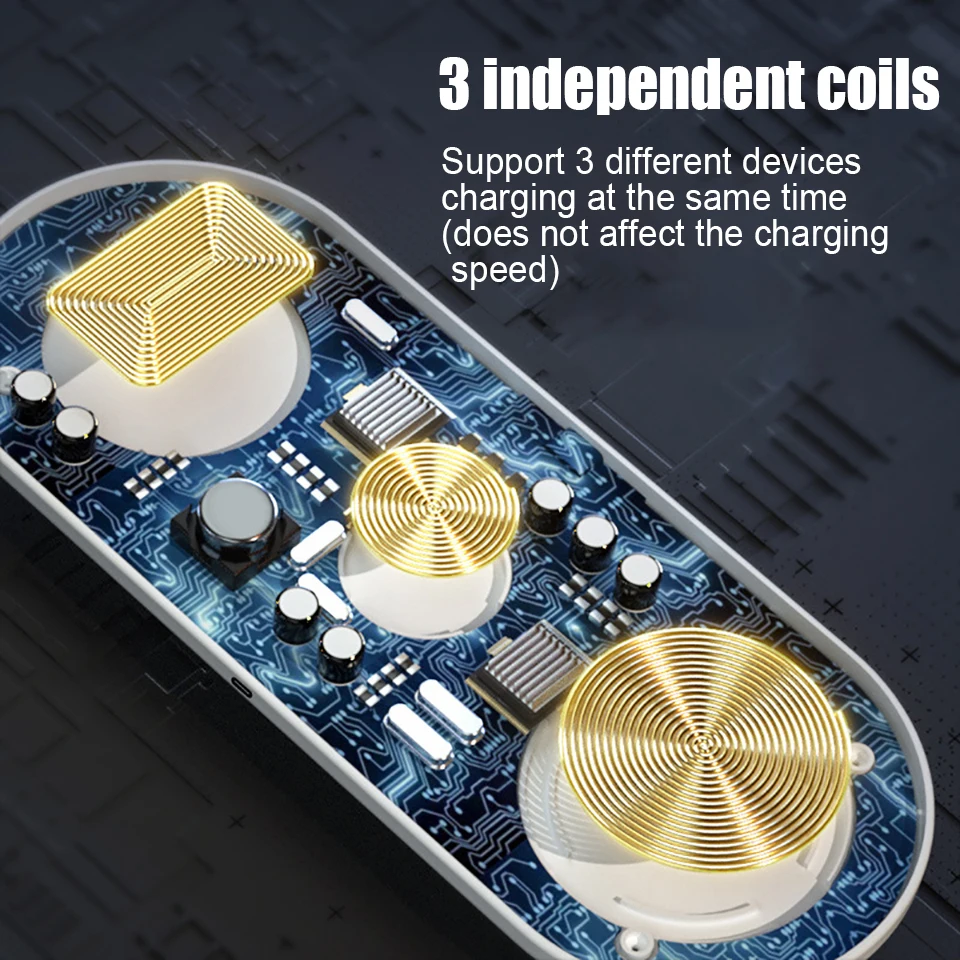 Tres bobinas independientes están integradas y tres dispositivos se cargan simultáneamente