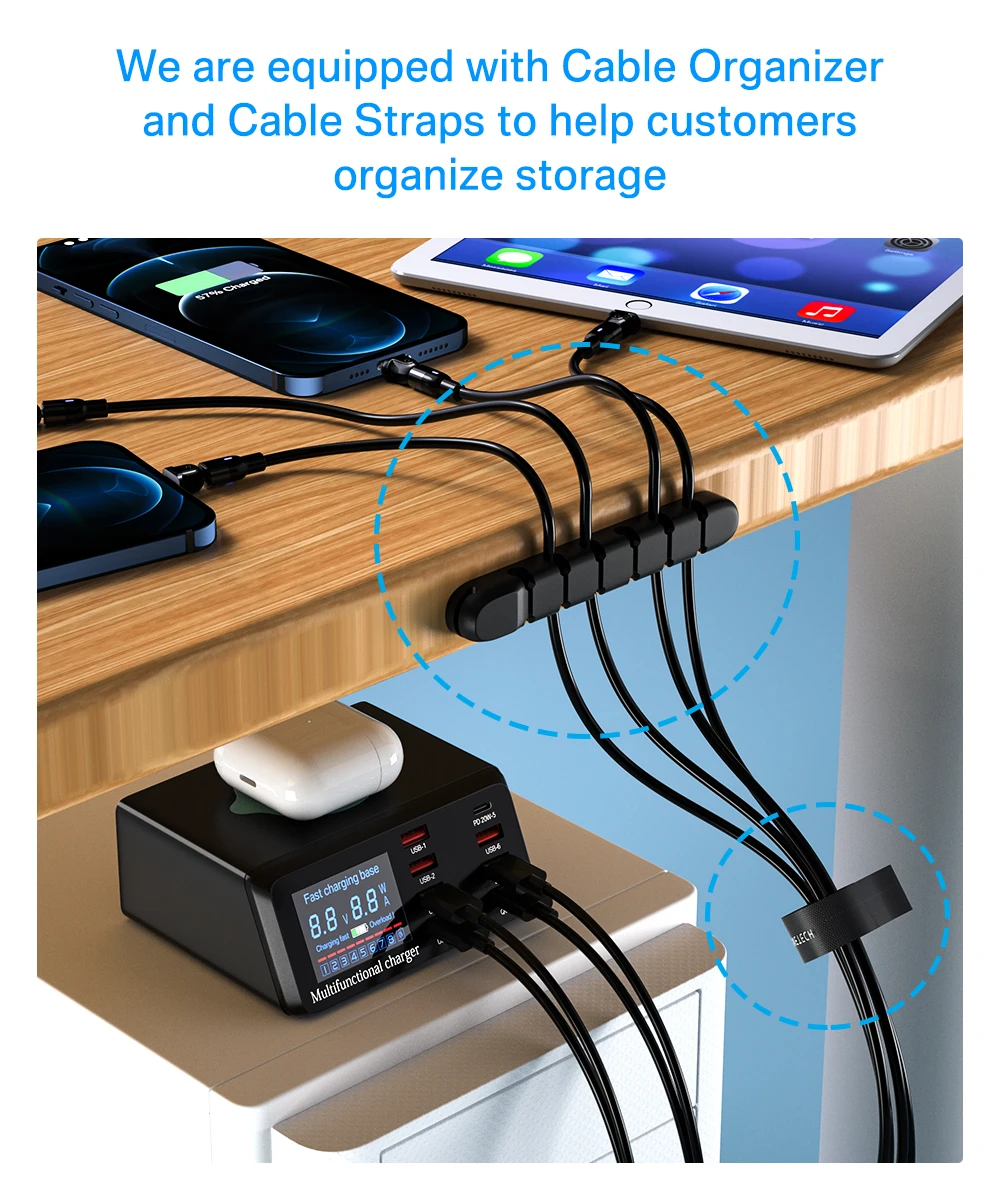 ✔ What you will get:8+1 ports USB fast Wireless charging station,user manual,1.2m ultra long detachable power cord,1pcs Cord Organizer Cable Management,2pcs Cable Organizer and friendly customer service.