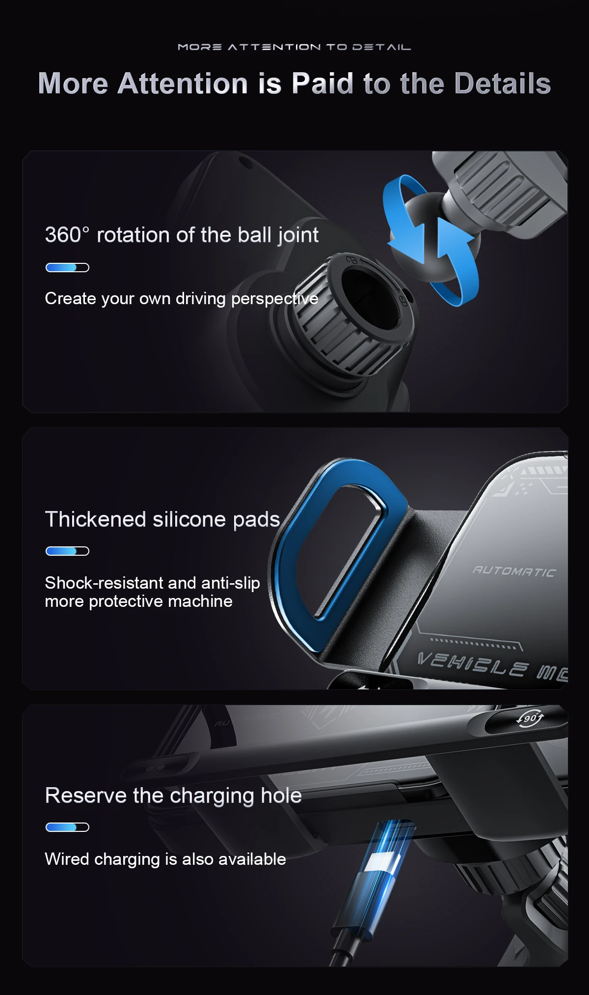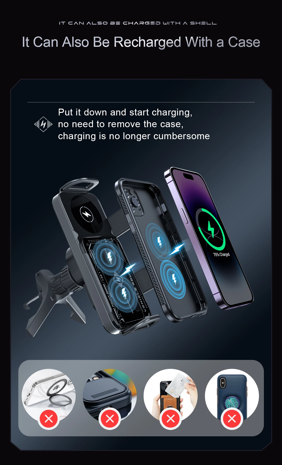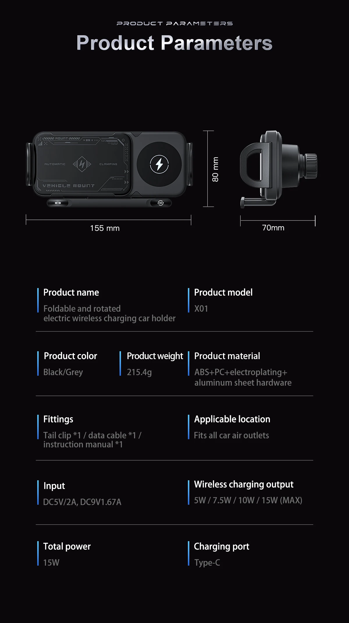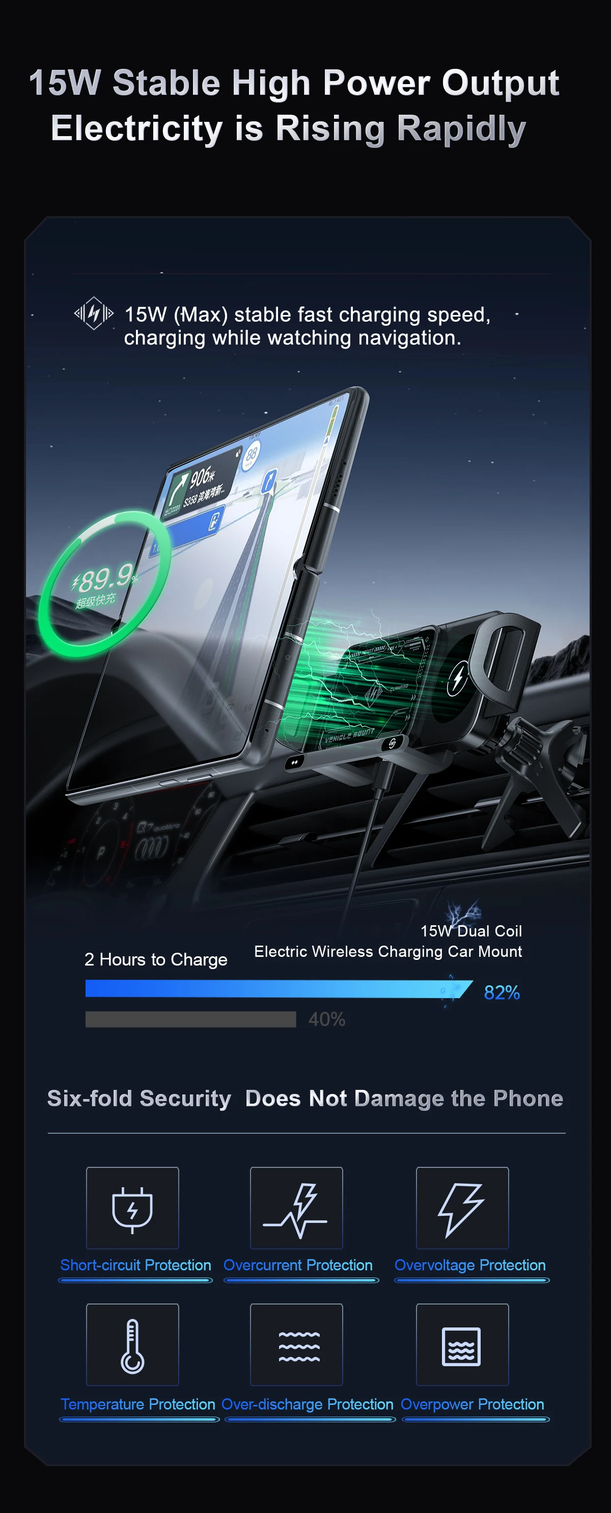 Soporte para coche de carga inalámbrica eléctrica de doble bobina de 15W