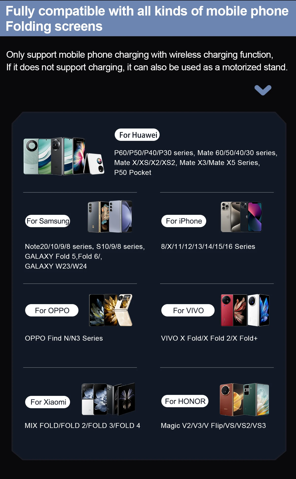 Diseñado para pantallas plegables con un solo clic 「Rotación telescópica」