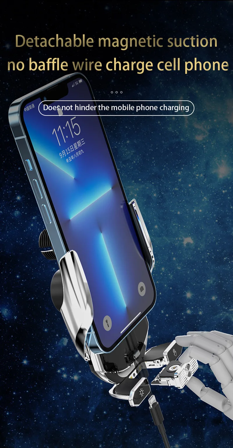 [Abrazaderas automáticas y operación con una sola mano]Este cargador inalámbrico para automóvil está equipado con tecnología de detección automática.Dos clips del soporte se cerrarán y sujetarán automáticamente su teléfono cuando esté conectado al soporte para automóvil; Para soltar el teléfono, toque con la mano la parte superior del soporte, los clips se abrirán automáticamente y luego podrá sacar el teléfono.