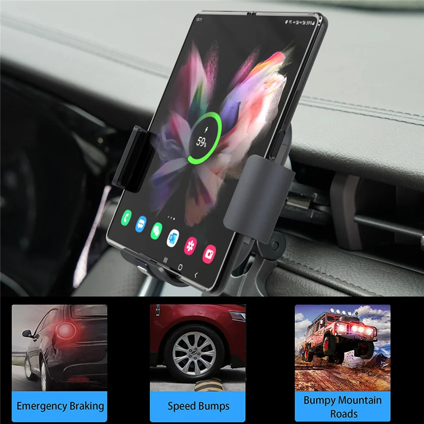 Comprar Cargador inalámbrico para coche, estación de carga rápida, soporte de teléfono para Samsung Galaxy Z Fold 4, 3, 2, iPhone 14, 13 Pro Max, pantalla plegable, 15W