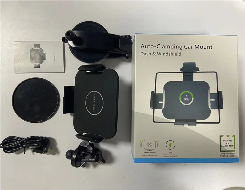 Distancia de carga: 8mm Max-El cargador incluye dos tipos de soportes (ventilación de aire + soporte de succión)-Contiene embalaje al por menor-Adaptador de CA no incluido