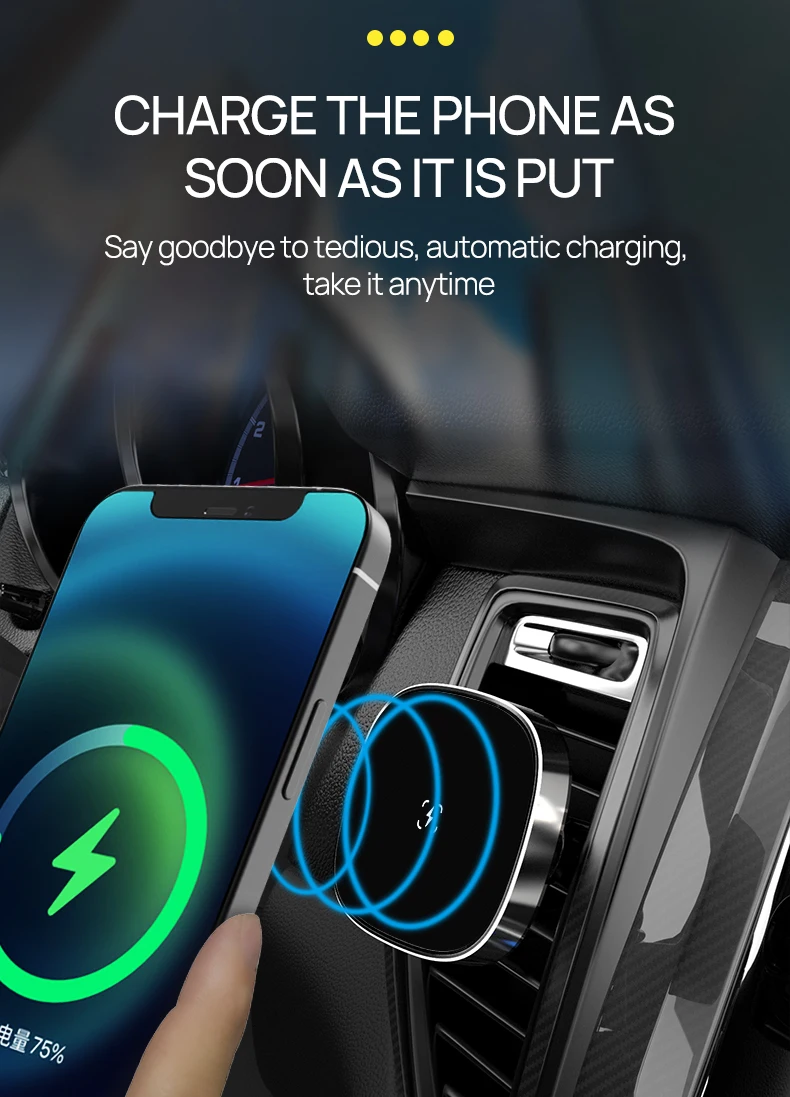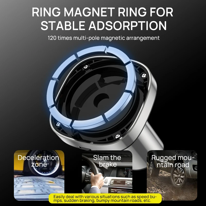 Cargador inalámbrico para coche de 15W para Iphone 13 12 Pro Max Mini Macsafe, soporte magnético para cargador de teléfono de coche de aleación de aluminio, soporte Magsafe