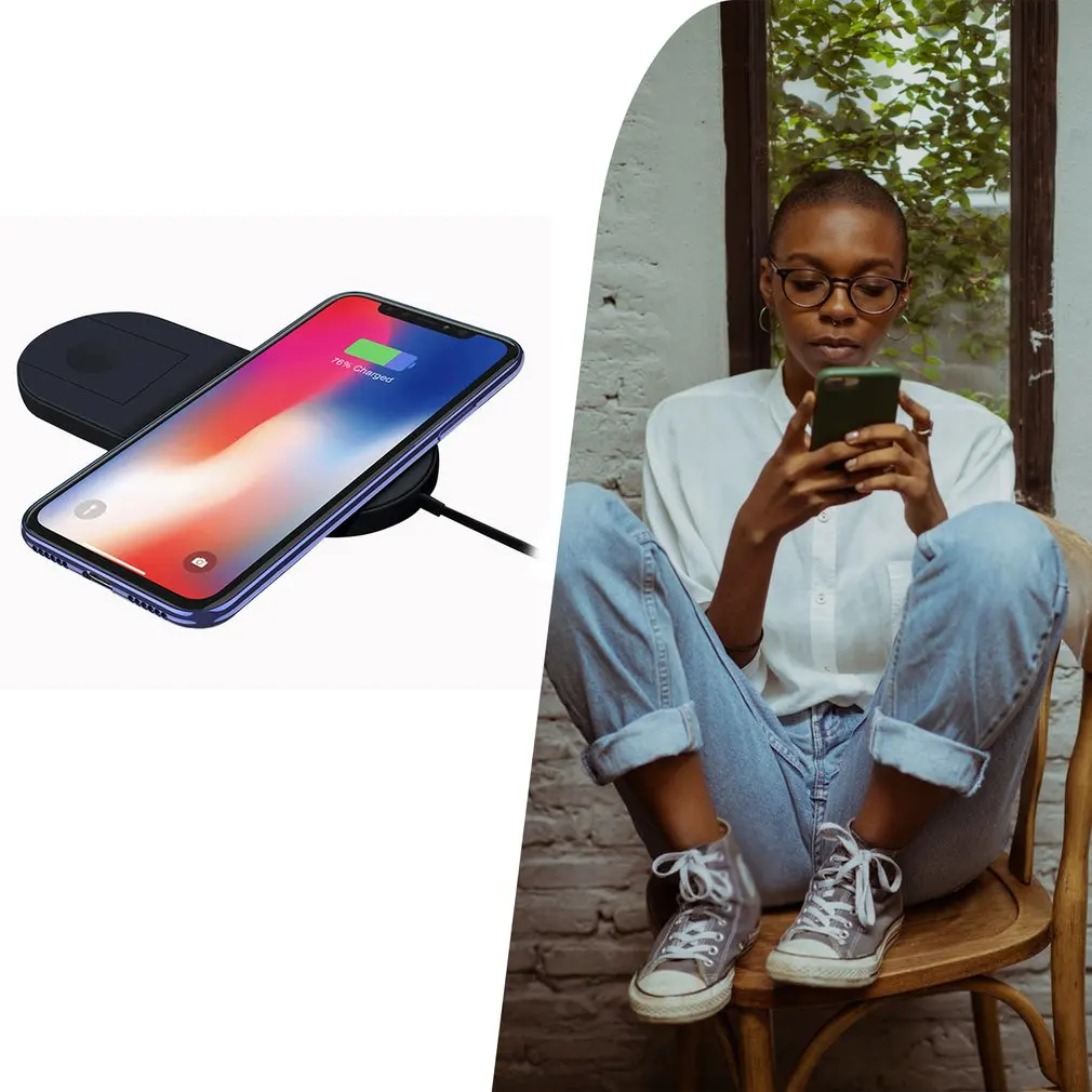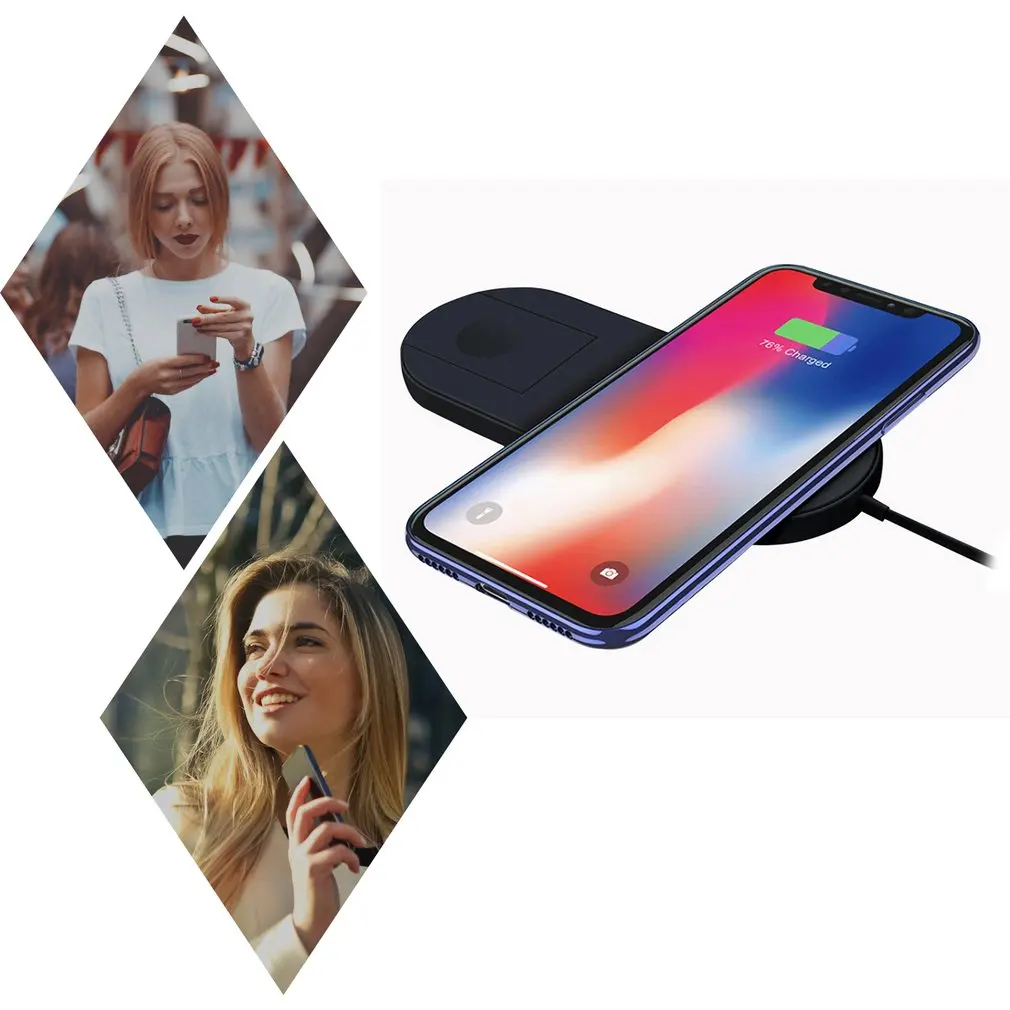 Comprar Cargador inalámbrico Dual para reloj inteligente y otros dispositivos inteligentes habilitados para Qi, soporte de carga rápida, cargador inalámbrico