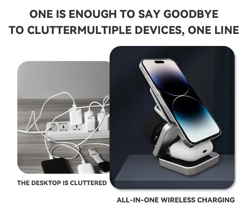 【 Cargador inalámbrico 3 en 1 】:La estación de carga inalámbrica 3 en 1 para el cargador Apple MacSafe para múltiples dispositivos es una excelente opción para organizar su hogar, oficina o sala de reuniones. Le permite despedirse de los cables enredados y los cables desordenados, manteniendo su espacio ordenado y organizado, lo que lo convierte en una solución de carga conveniente para su estilo de vida ocupado.