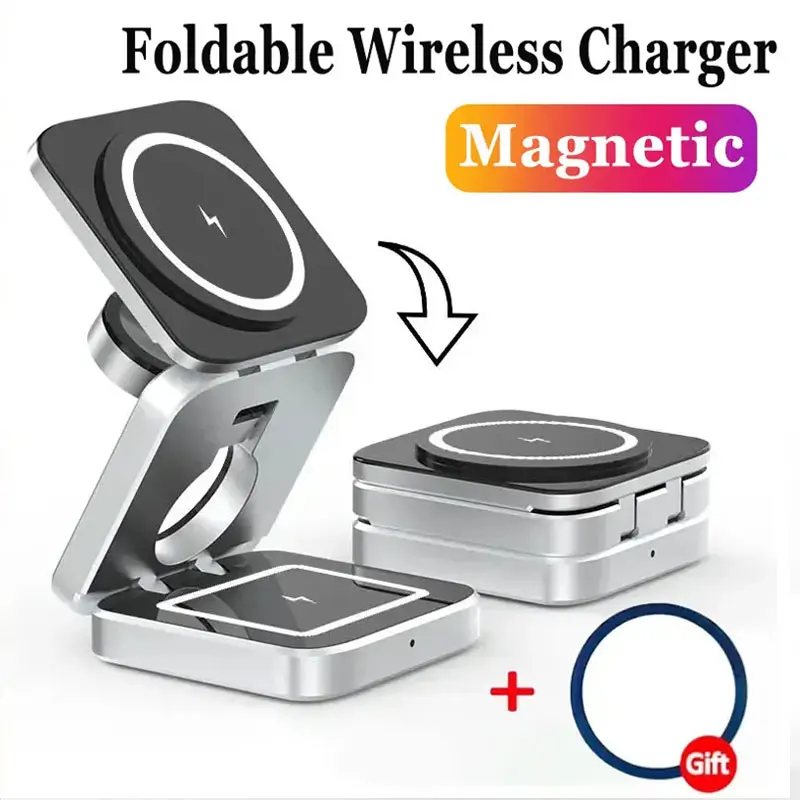 Comprar Cargador inalámbrico magnético 3 en 1, estación de carga rápida para iPhone 15, 14, 13, 12 Pro Max, IWatch 8, 7, 6, 5, Airprods, Macsafe
