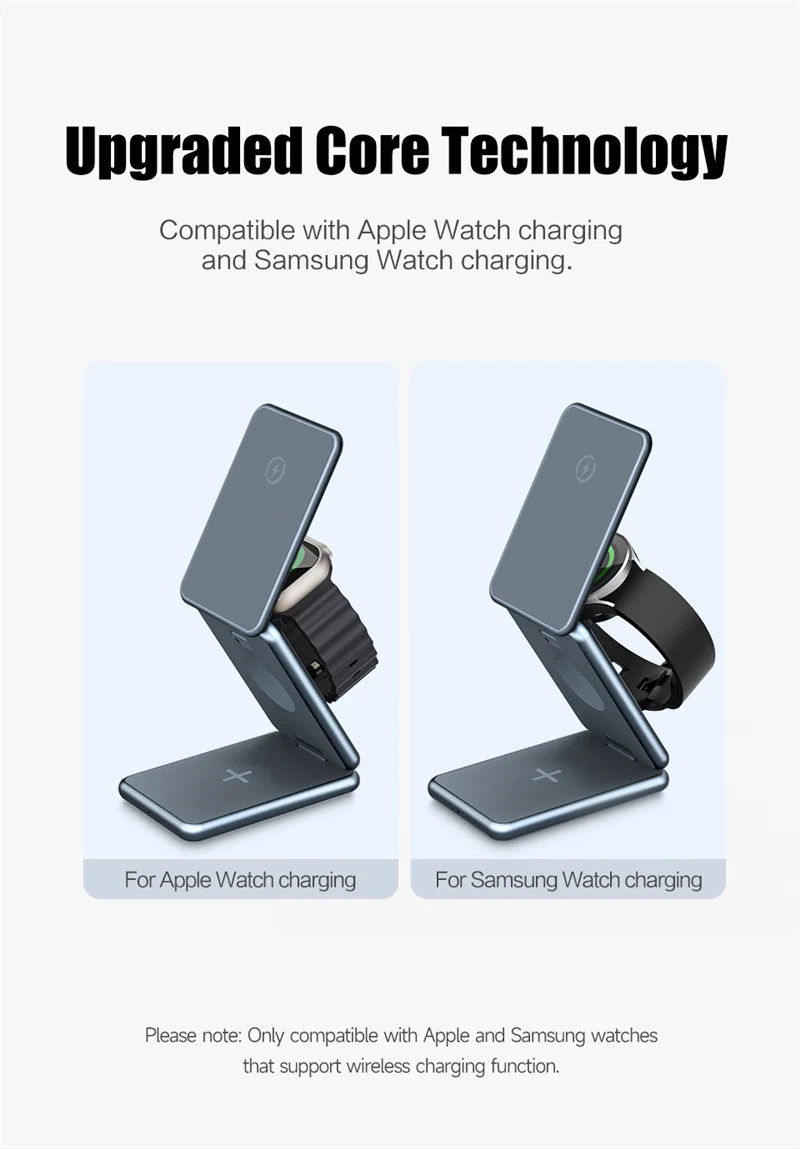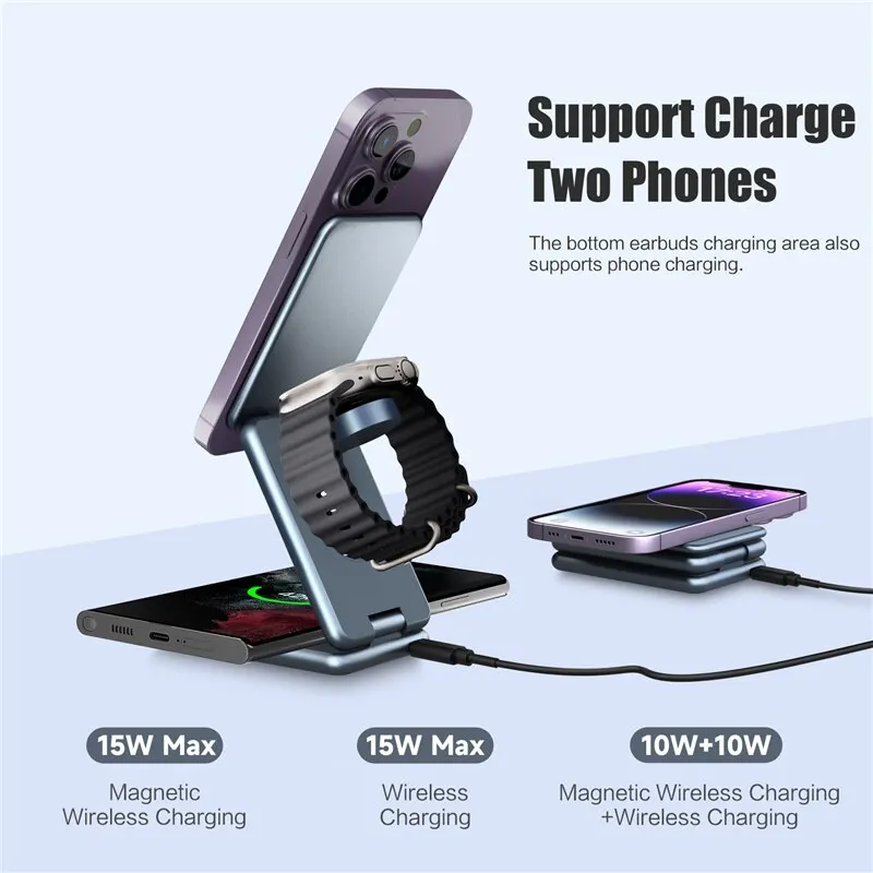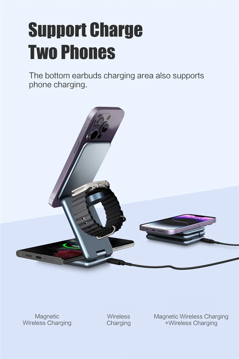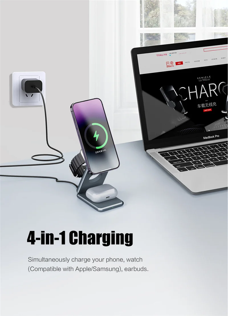Comprar Cargador inalámbrico magnético 3 en 1 para iPhone 15 14 13 Samsung Galaxy Watch IWatch estación de carga rápida plegable