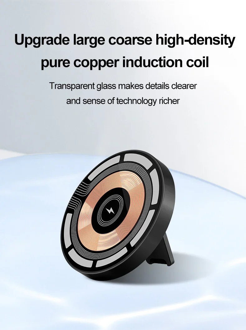 Este cargador magnético es esencialmente un cargador inalámbrico rápido, nos hemos centrado en diseñar cuatro características útiles: