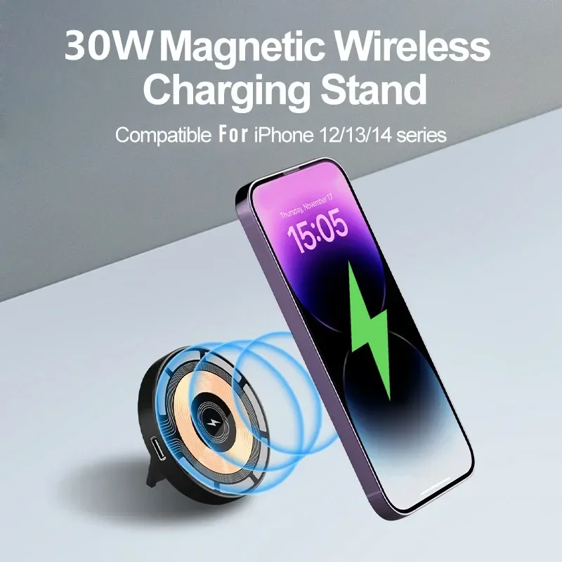 Comprar Cargador inalámbrico magnético de 30W para iPhone, almohadilla de carga inalámbrica rápida, soporte ultrafino para cargadores de teléfono, 15, 14, 13, 12 Pro Max