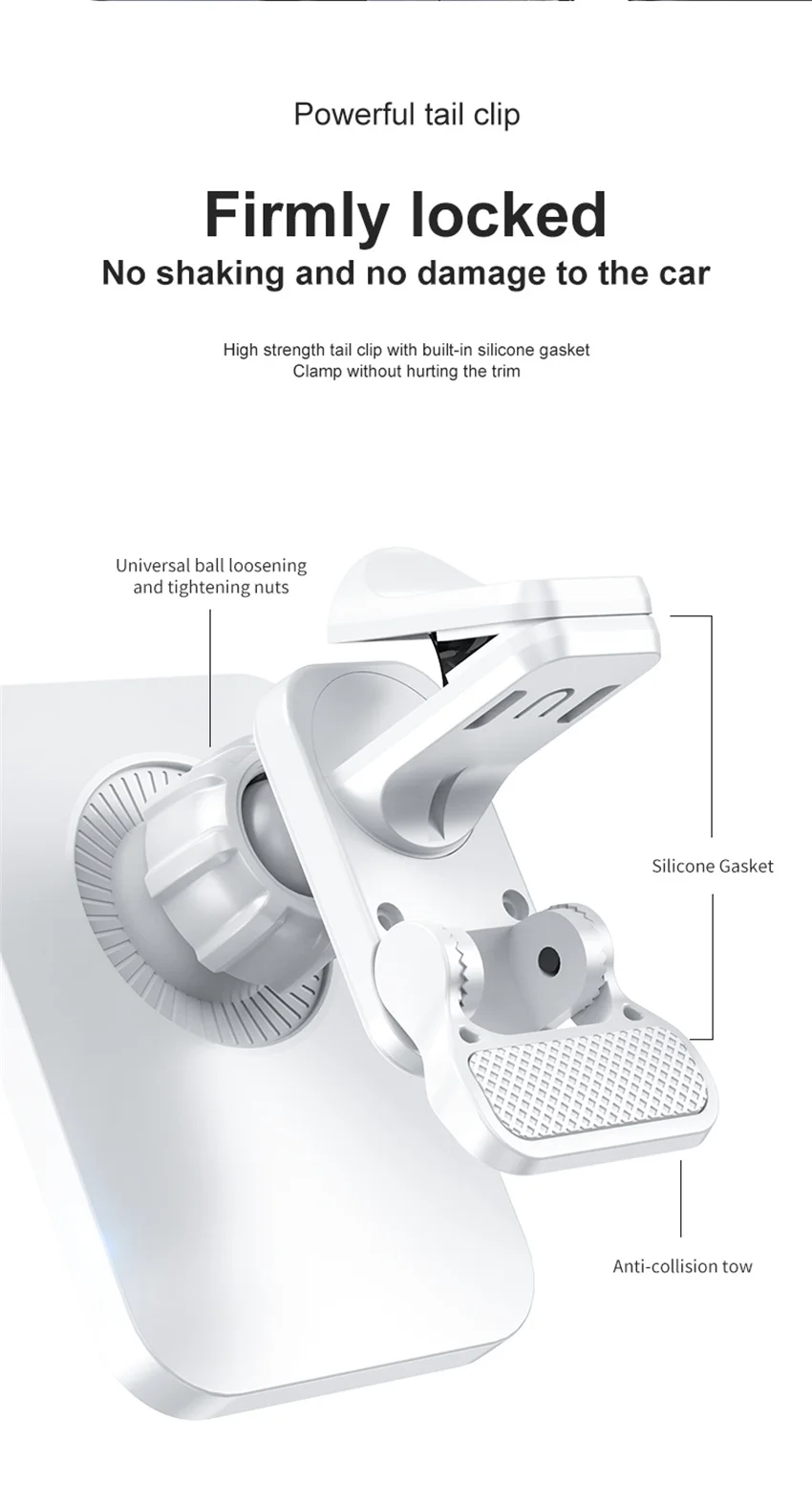 Instalación segura:Este soporte para teléfono de coche está equipado con una versión mejorada del clip de ventilación, que puede fijar de forma segura su smartphone en la ventilación del coche.
