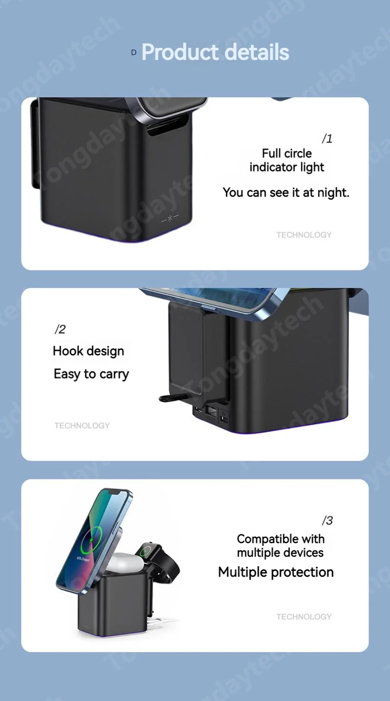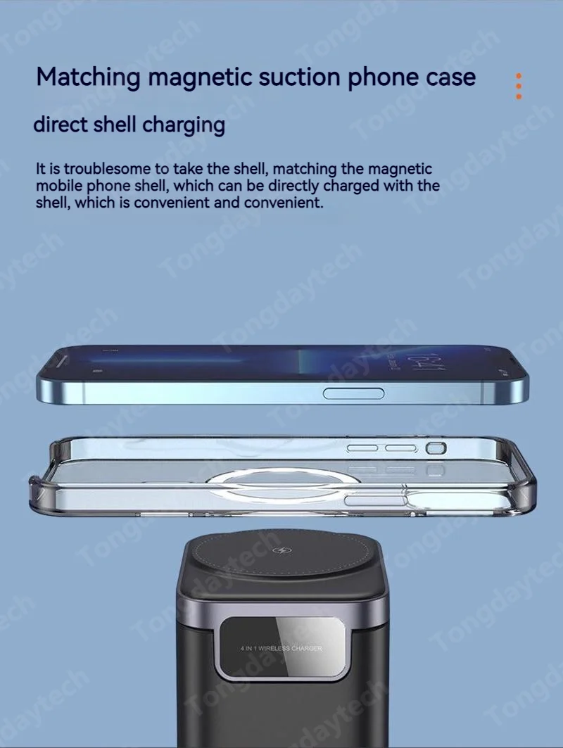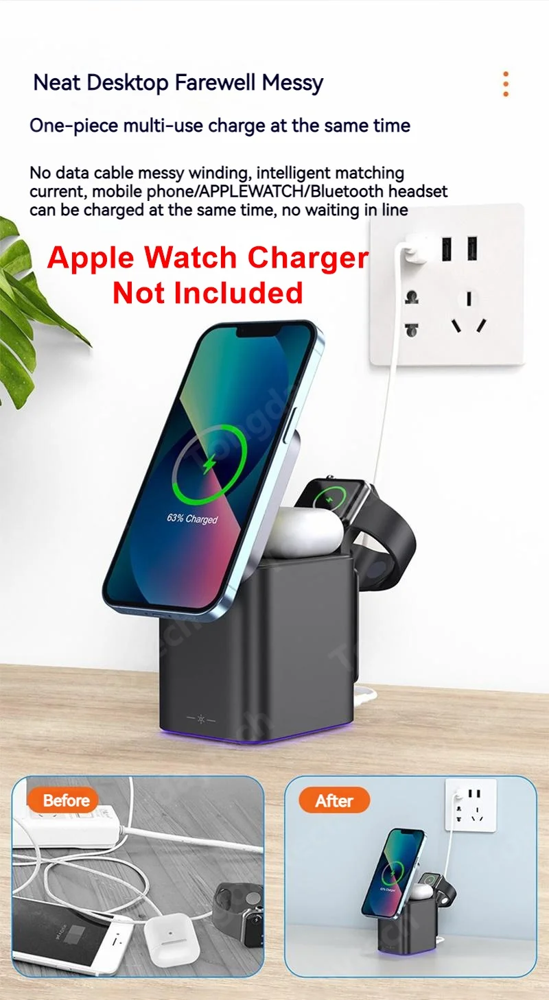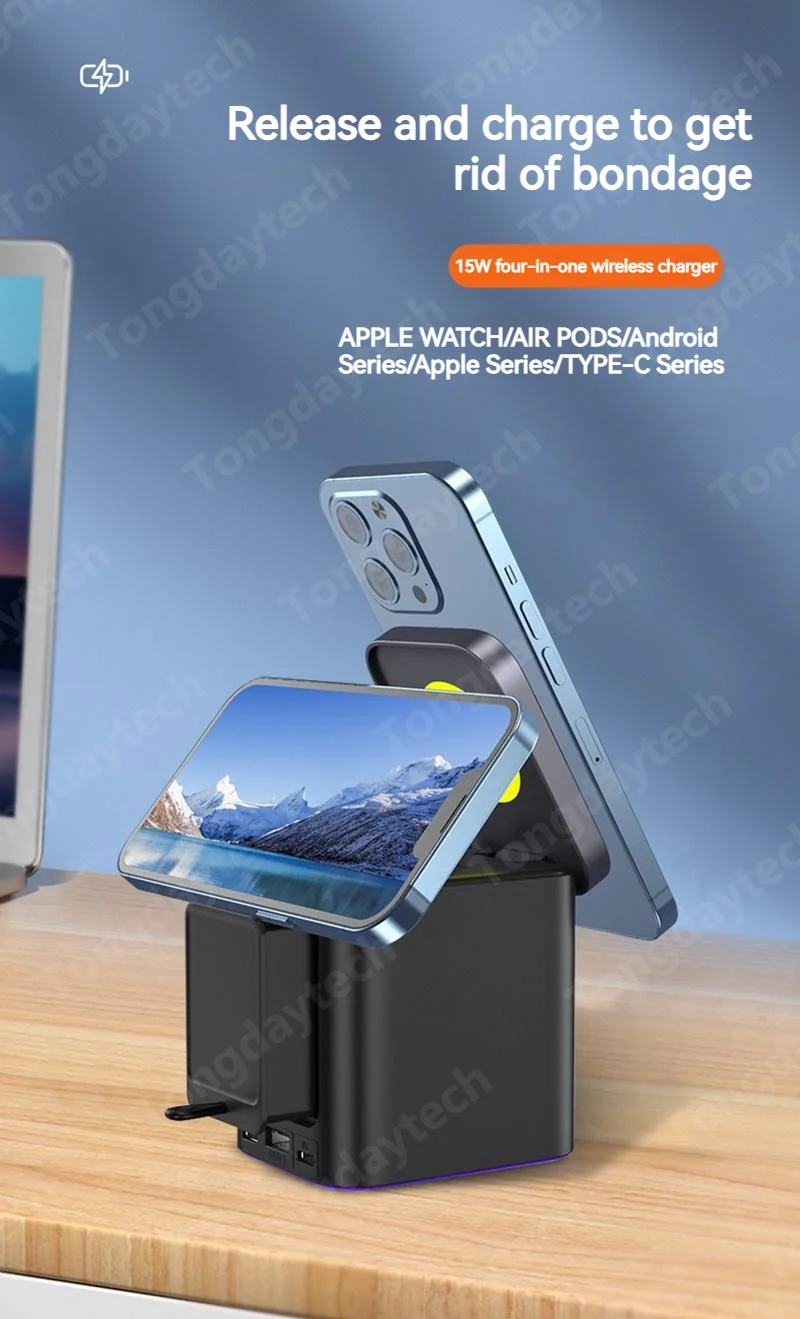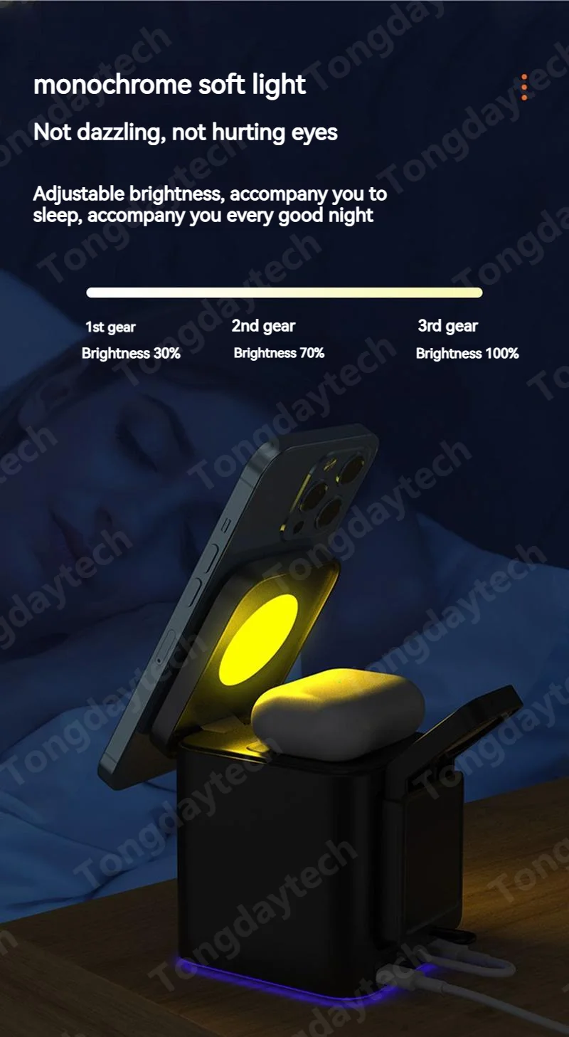Comprar Cargador inalámbrico magnético 4 en 1 con luz nocturna, estación de carga múltiple para Apple Watch Airpods Pro, Iphone 12, 13, 14 Pro MAX