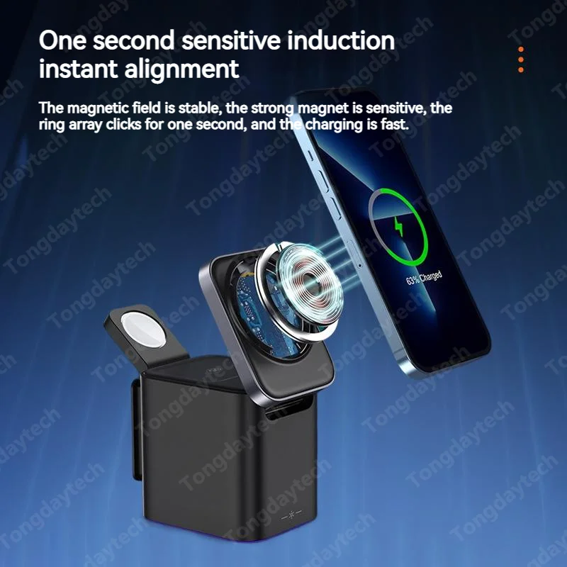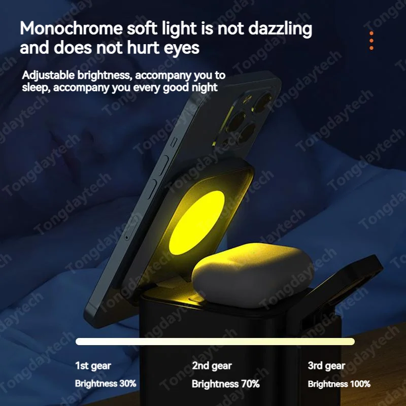 Comprar Cargador inalámbrico magnético 4 en 1 con luz nocturna, estación de carga múltiple para Apple Watch Airpods Pro, Iphone 12, 13, 14 Pro MAX