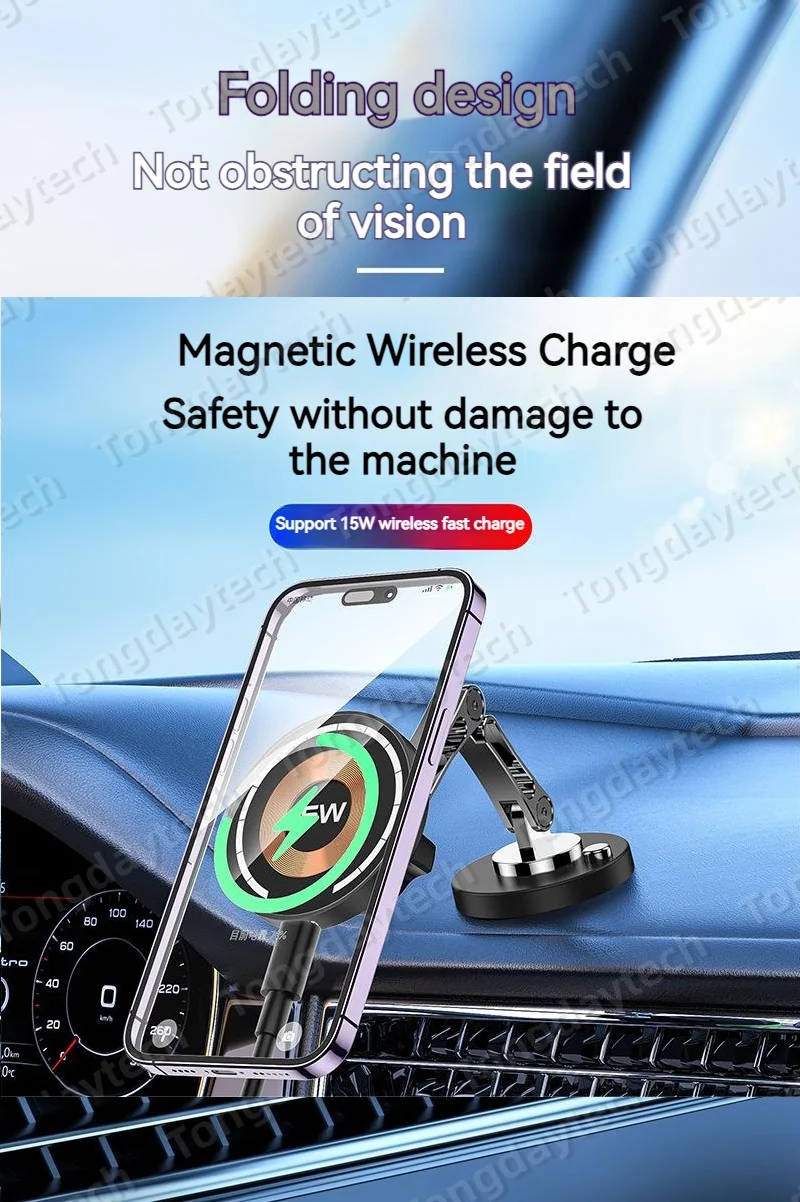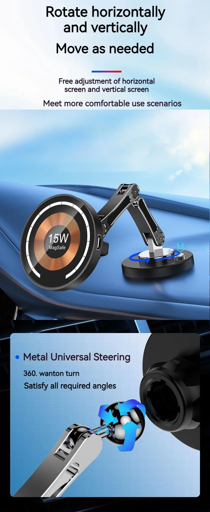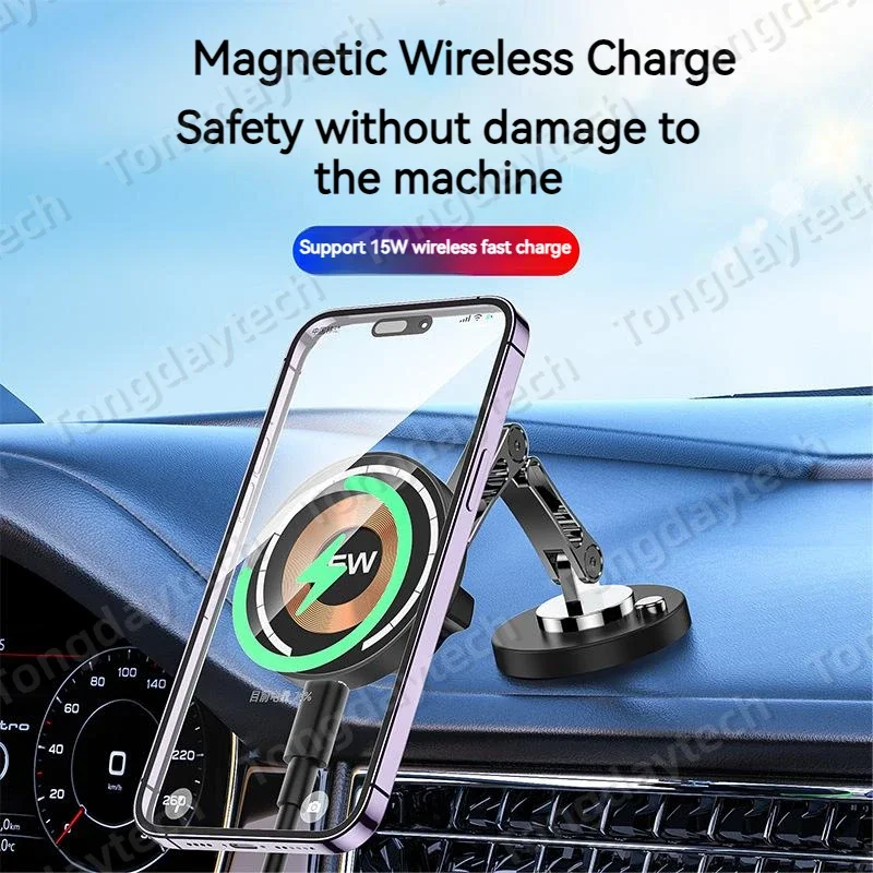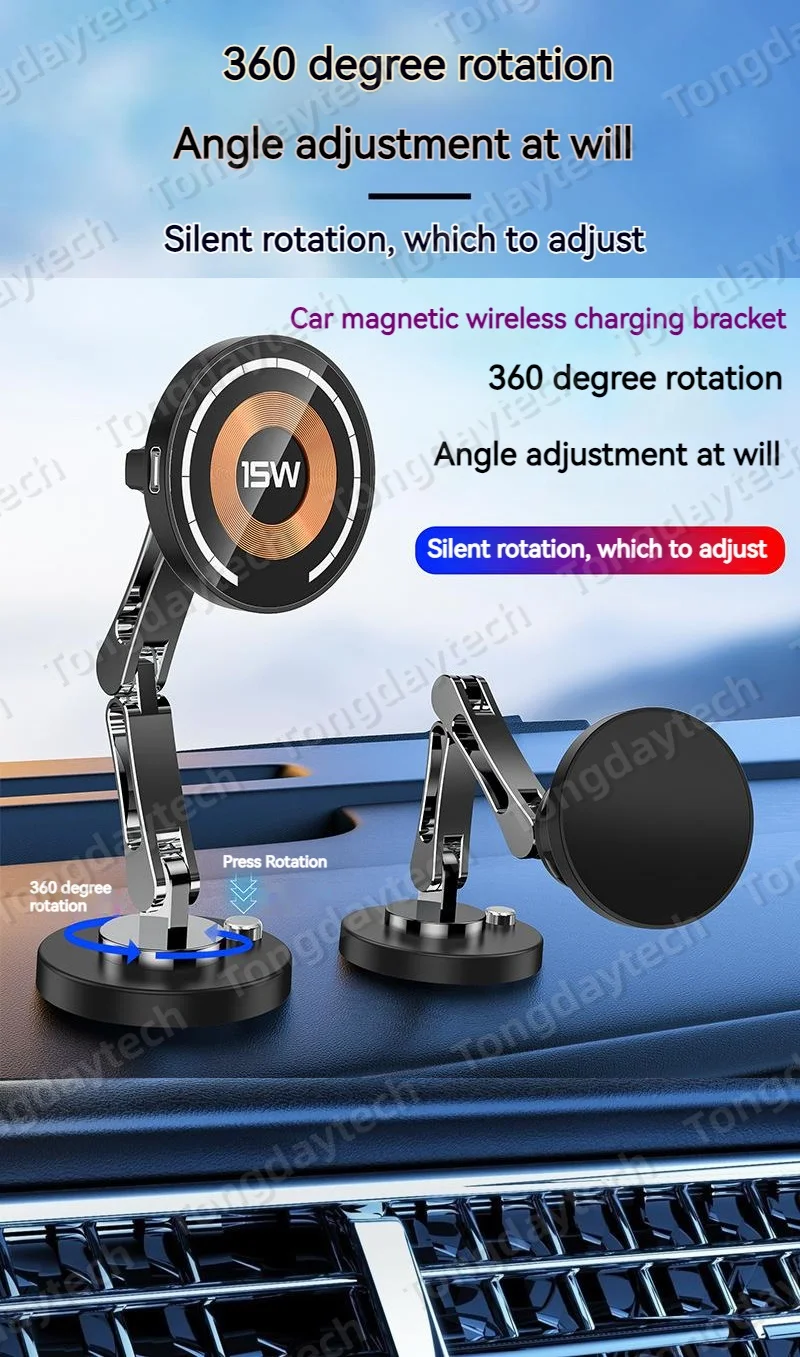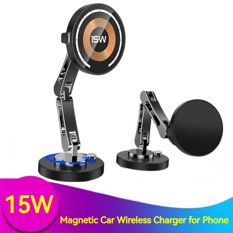 Cargador inalámbrico magnético de aleación de aluminio para coche, soporte giratorio 360 de 15W para Iphone 14, 13, 12, 11 Pro Max, Samsung, cargadores Sem Fio