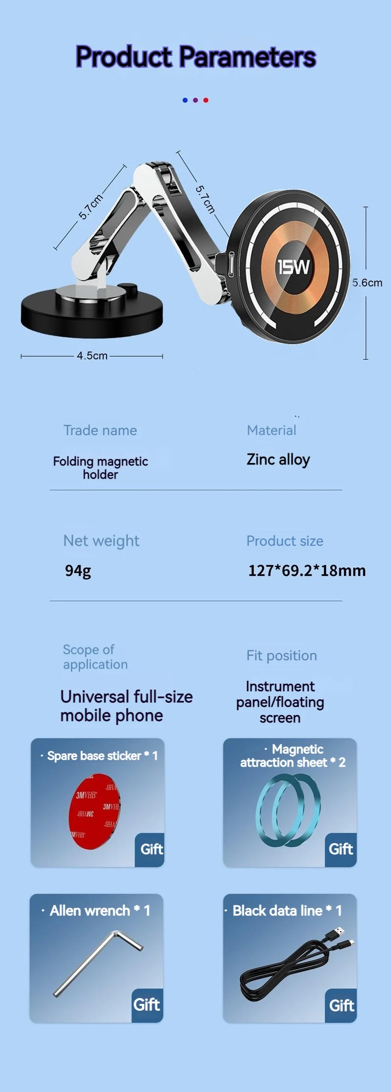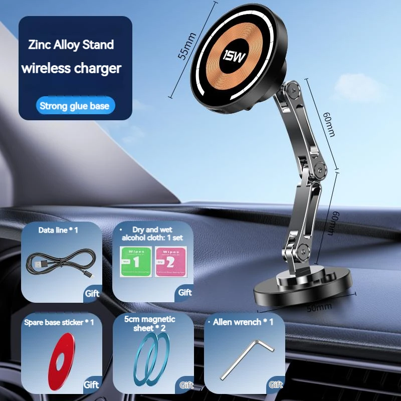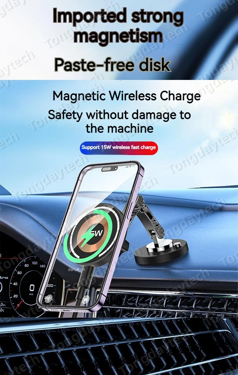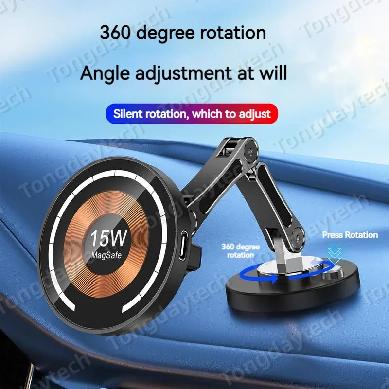 Comprar Cargador inalámbrico magnético de aleación de aluminio para coche, soporte giratorio 360 de 15W para Iphone 14, 13, 12, 11 Pro Max, Samsung, cargadores Sem Fio