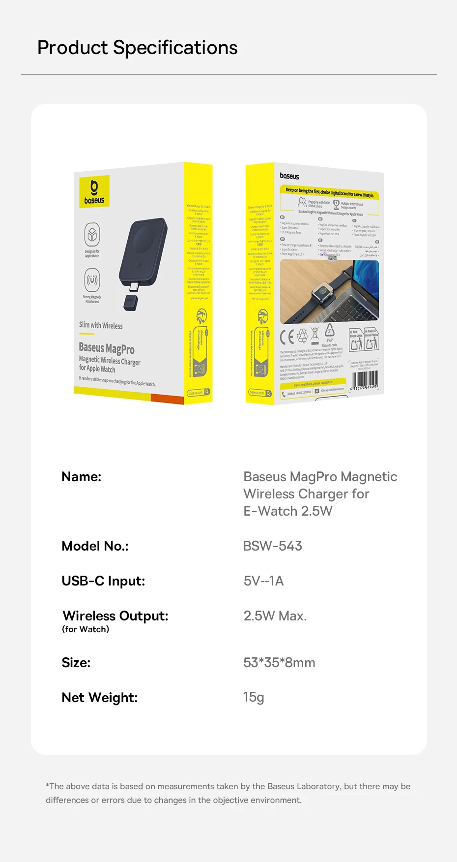 Comprar Cargador inalámbrico magnético Baseus MagPro para E-Watch 2,5 W para Apple Watch S1-S10 Series SE Series Ultra Series