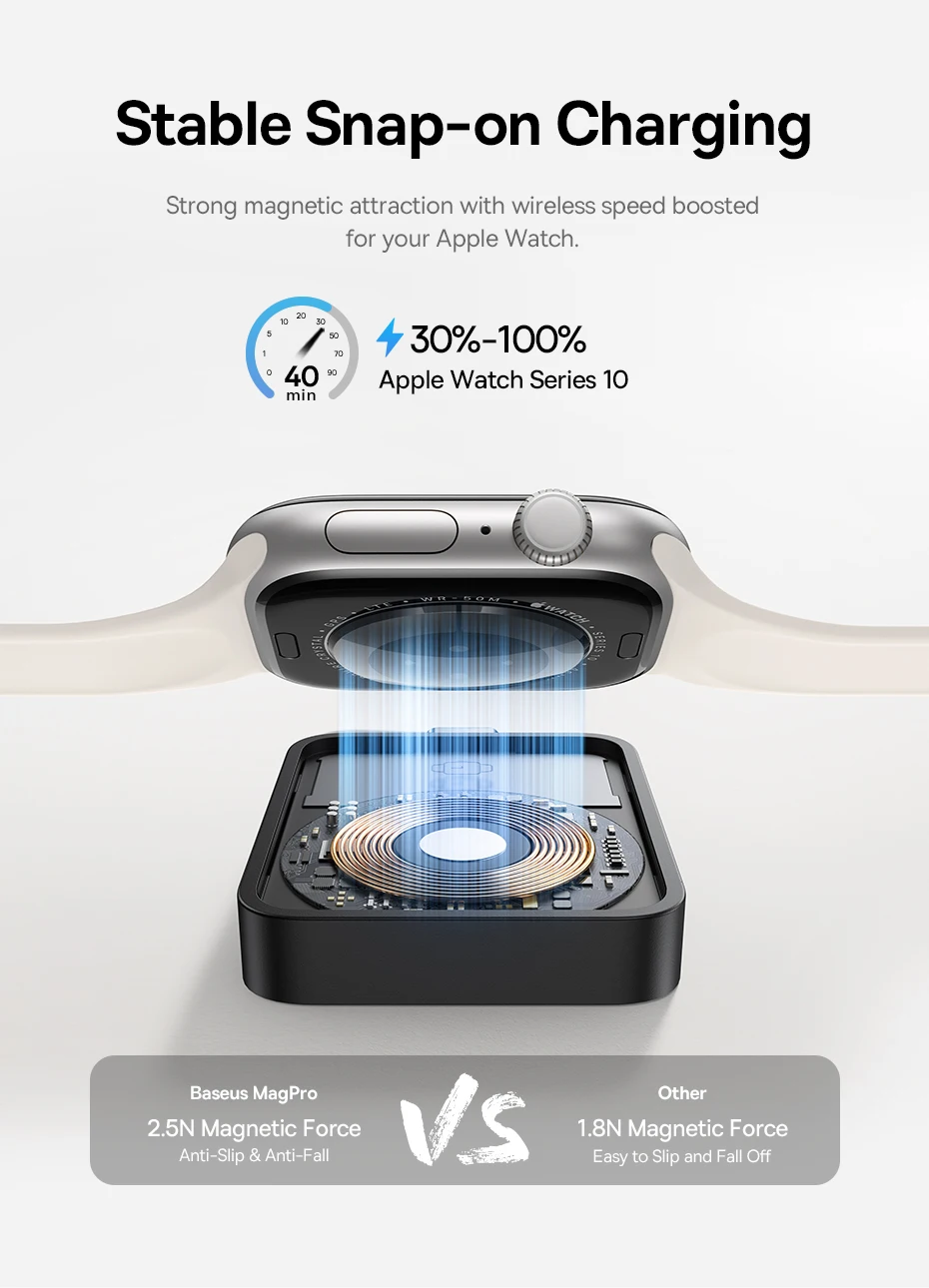 ¡Realmente espectacular! Carga muy bien el Apple Watch 10. Incluso usando un Powerbank. Recomiendo comprar.