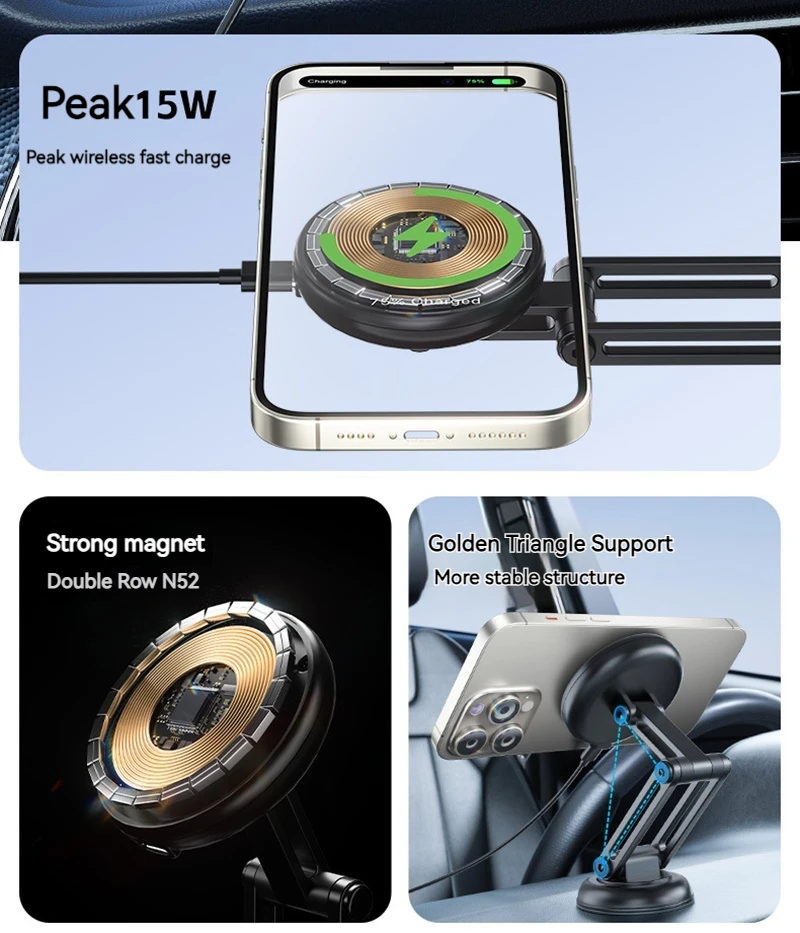 Comprar Cargador inalámbrico magnético Para coche, soporte de Metal plegable Para teléfono Iphone 15, 14, 13, 11pro Max, Samsung, 15W