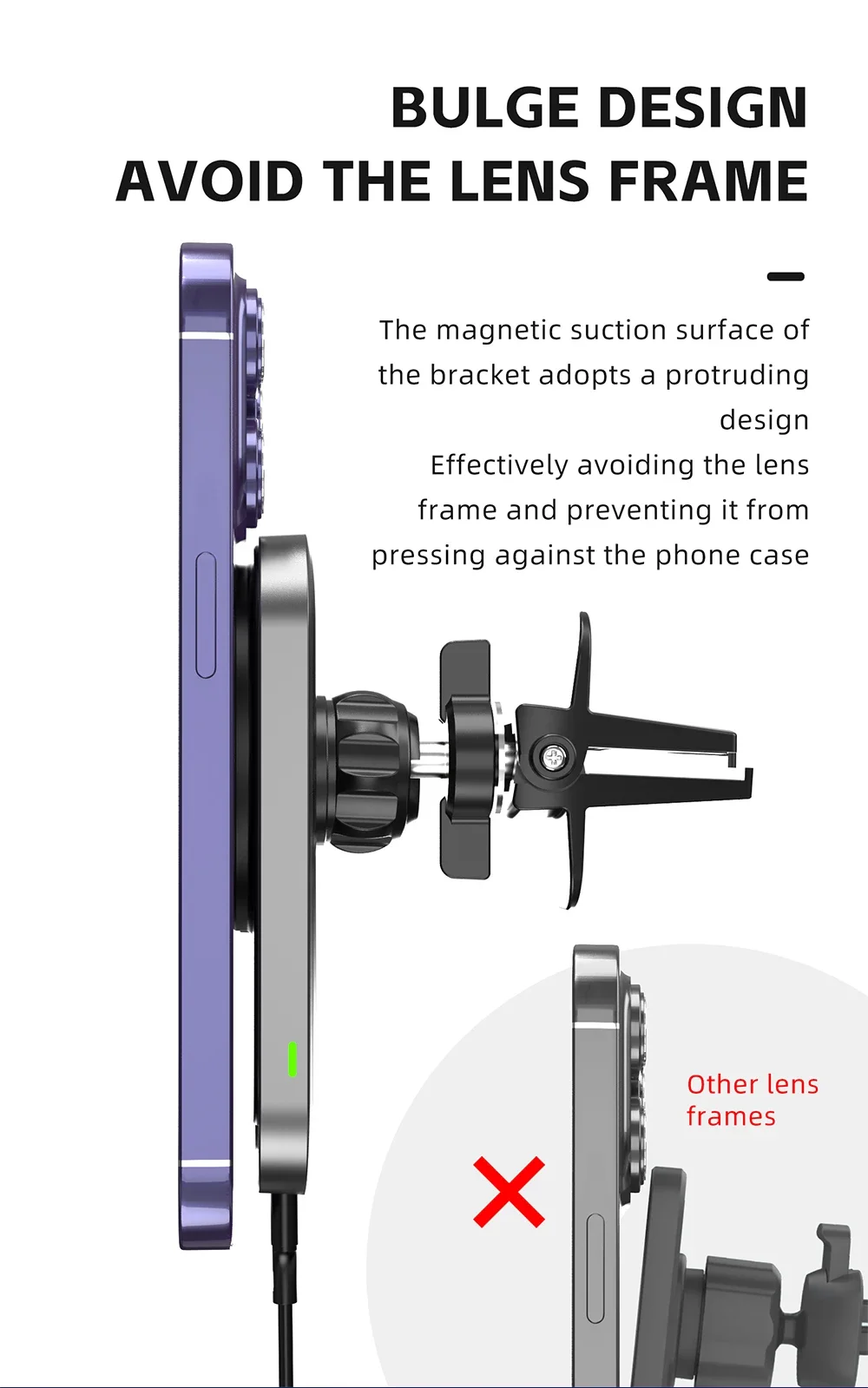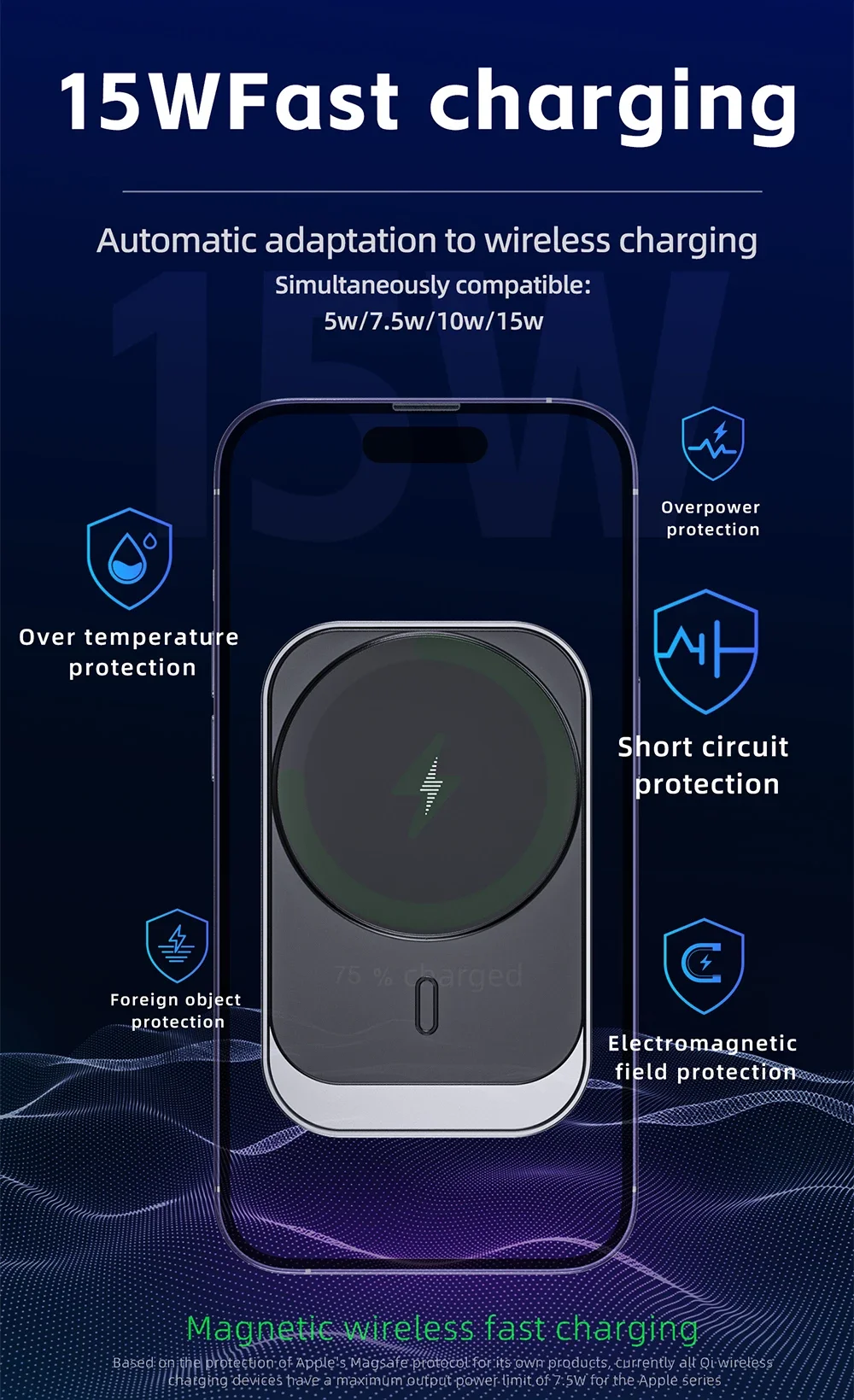 Carga rápida inalámbrica:Muy bueno para macsafe todas las series iPhone 12-15. Cargue rápidamente su iPhone 12, iPhone 12 Pro, iPhone 12 Mini, iPhone 12 Pro Max /iPhone 13, iPhone 13 Pro, iPhone 13 Mini, iPhone 13 Pro Max, iPhone 14, iPhone 14 Pro, iPhone 14 Max, iPhone 14 Pro Max, iPhone 15 series, Con una potencia máxima de 15W. También admite carga inalámbrica estándar de 5W/7,5 W/10W.