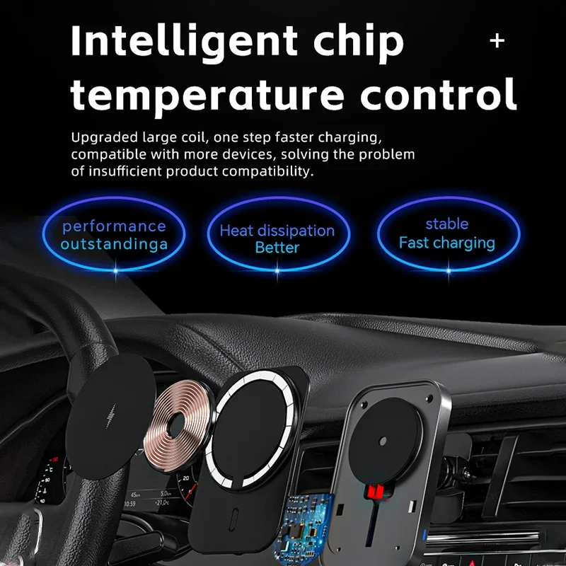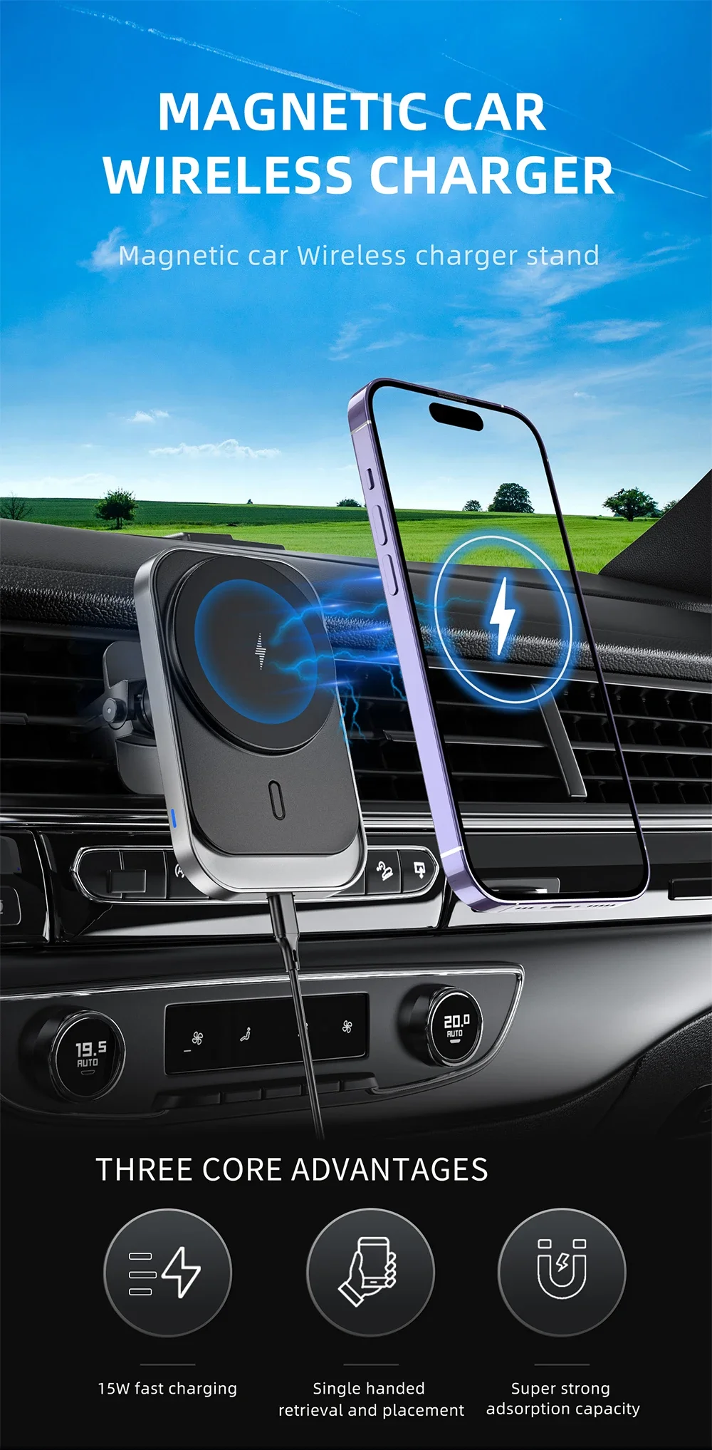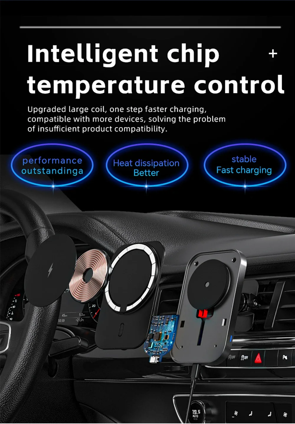 Comprar Cargador inalámbrico magnético para coche, soporte de teléfono magnético para iPhone 12, 13, 14, 15 Pro Max, estación de carga rápida de 15W