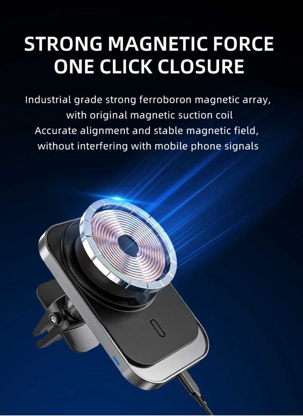 Fuerte magnético:El potente magnético fija el teléfono sin deslizarse, permitiendo que su teléfono esté completamente concentrado en la placa de carga para acelerar la carga.
