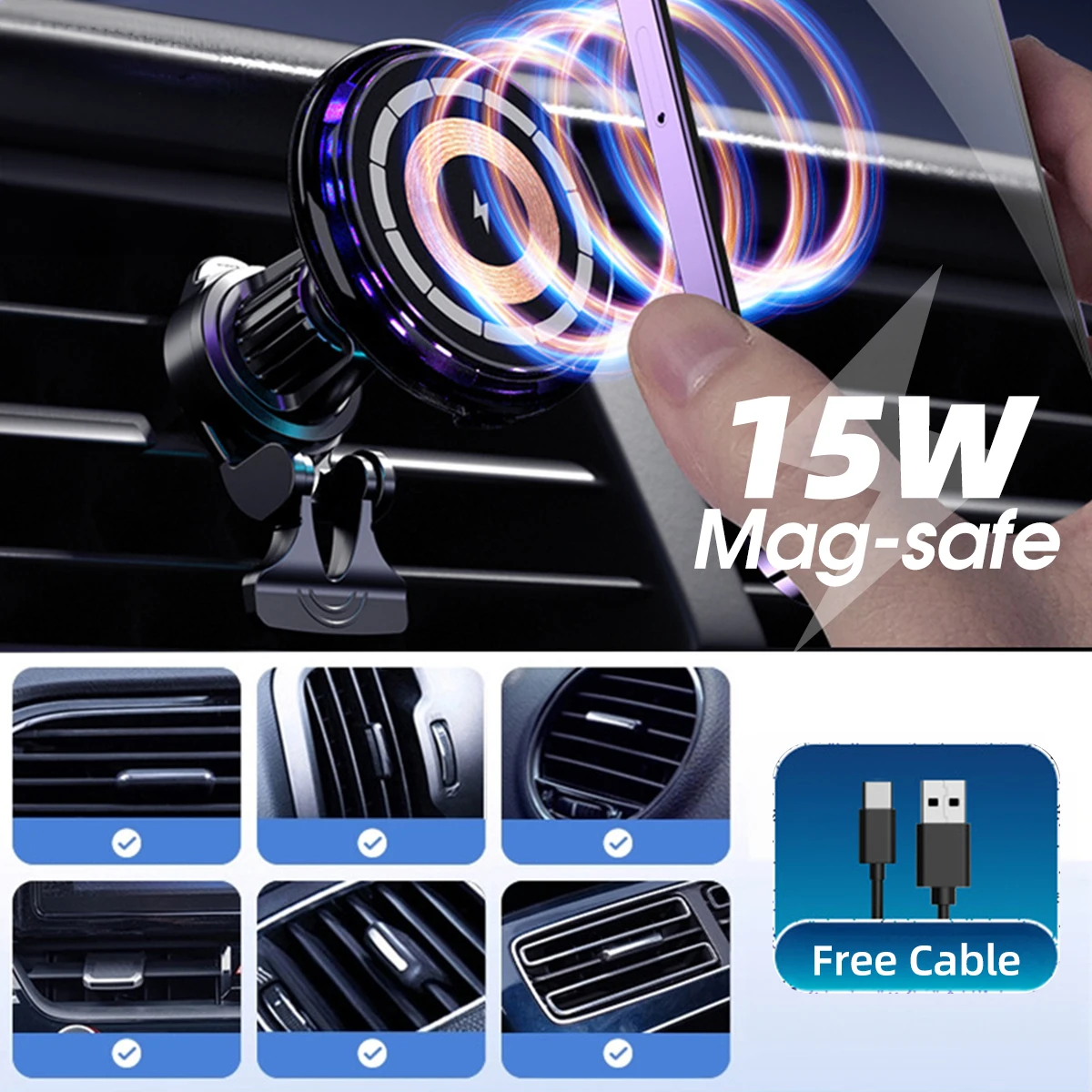Cargador inalámbrico magnético para coche, soporte de teléfono con ventilación de aire, estación de carga rápida para iphone 14, 13, 12 Pro Max, Mini, 15W