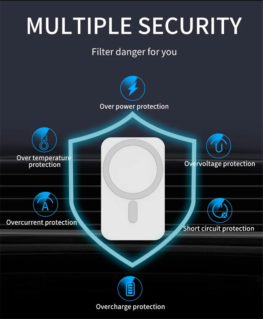 • Cargadores inalámbricos magnéticos:La función magnética garantiza que su teléfono se mantenga en su lugar mientras se carga, evitando que se caiga o se dañe.