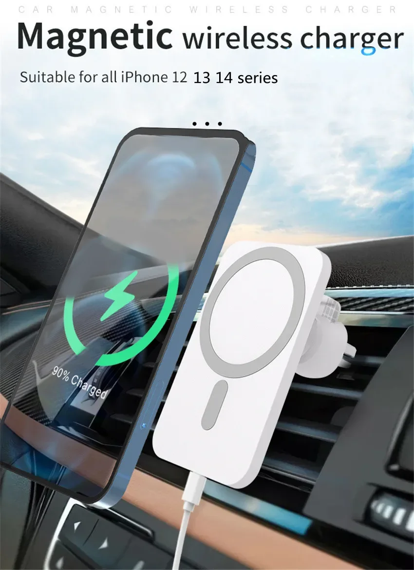 Comprar Cargador inalámbrico magnético para coche, soporte de teléfono para ventilación de aire, estación de carga rápida para iPhone 15, 14, 13 Pro Max, Mini, 30W