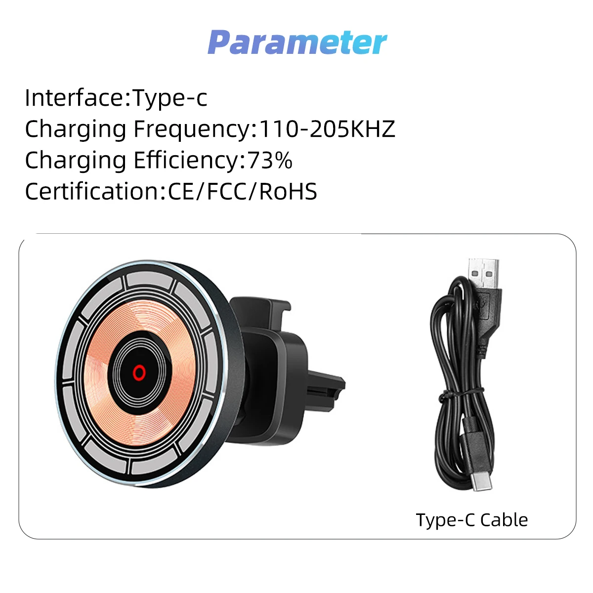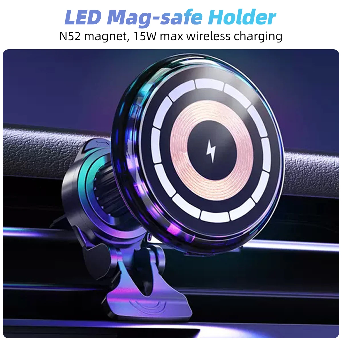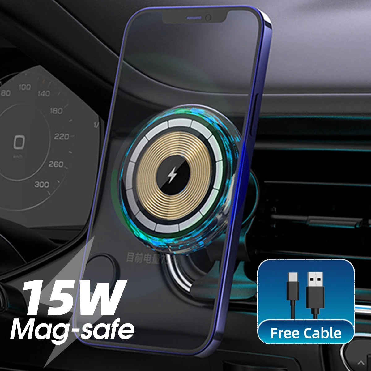 Cargador inalámbrico magnético para coche, soporte de ventilación de aire para teléfono, LED, 15W, estación de carga rápida para magsafe, iPhone 12, 13, 14 Pro Max