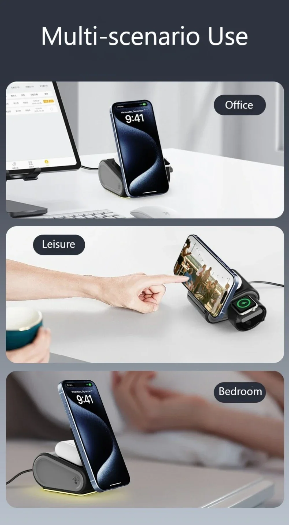 【Para cargador portátil Magsafe】Este soporte para cargador Magsafe es el compañero perfecto para su viaje.Se puede guardar fácilmente en su mochila o maleta, lo que facilita su viaje.Es muy adecuado para muchas escenas como oficina, sala de estar, estudio, cocina, mesita de noche, etc.