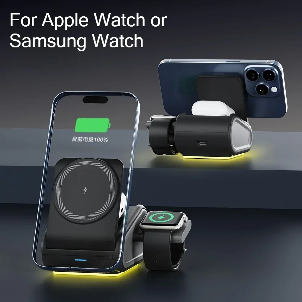 【Estación de carga 3 en 1 Apple】Esta estación de carga para iPhone está diseñada para iPhone, iWatch y Airpods, compatible con iPhone serie 17/16/15/14/13/12 (15W MAX), iWatch Ultra/10/9/8/7/SE/5/Serie/3/2 (3W MAX), Samsung Galaxy Watch 7/6/5/4/3/2 y Airpods serie 3/2/Pro (3W MAX). (Consejos: utilice el adaptador QC 3.0 o el adaptador PD para lograr el mejor efecto de carga)