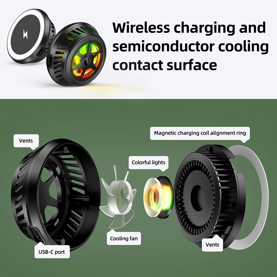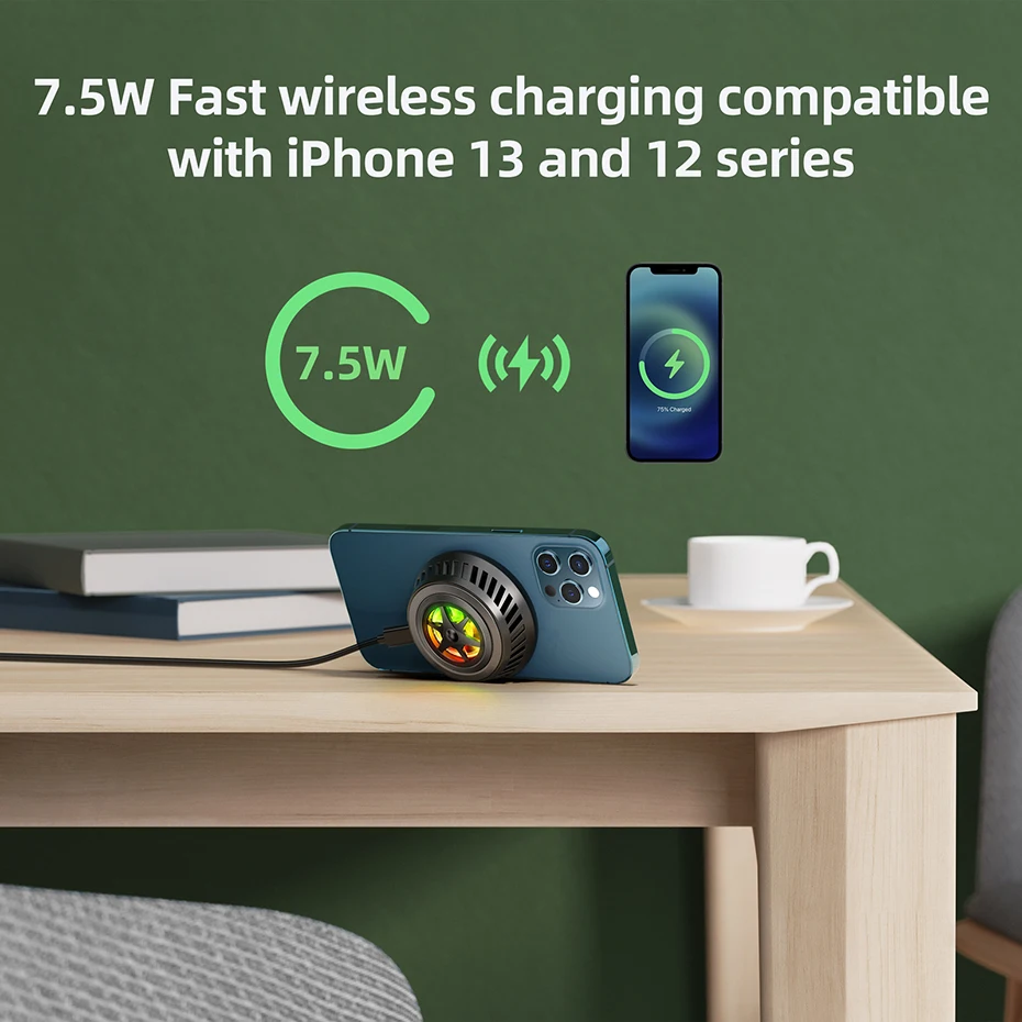 Comprar Cargador inalámbrico magnético para móvil, soporte de ventilador de refrigeración Semiconductor para iPhone 11, 12, 13Pro Max, 7,5 W, radiador LED de carga rápida para teléfono