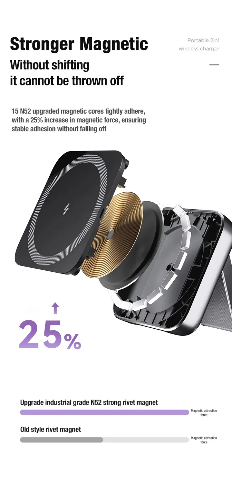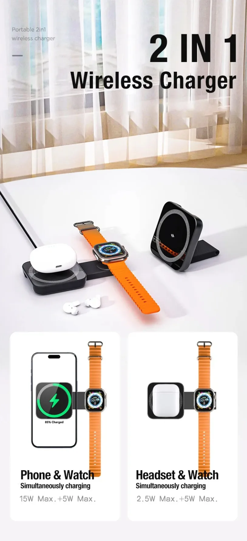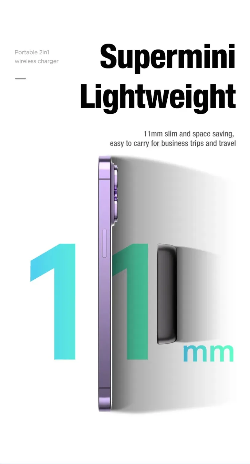 ESENCIALES DE VIAJE PLEGABLES —— Esta estación de carga portátil 2 en 1 para Apple se puede plegar 180° en una plataforma de carga inalámbrica sin problemas, pequeña y poco voluminosa.Aspecto sencillo sin ocupar demasiado espacio.