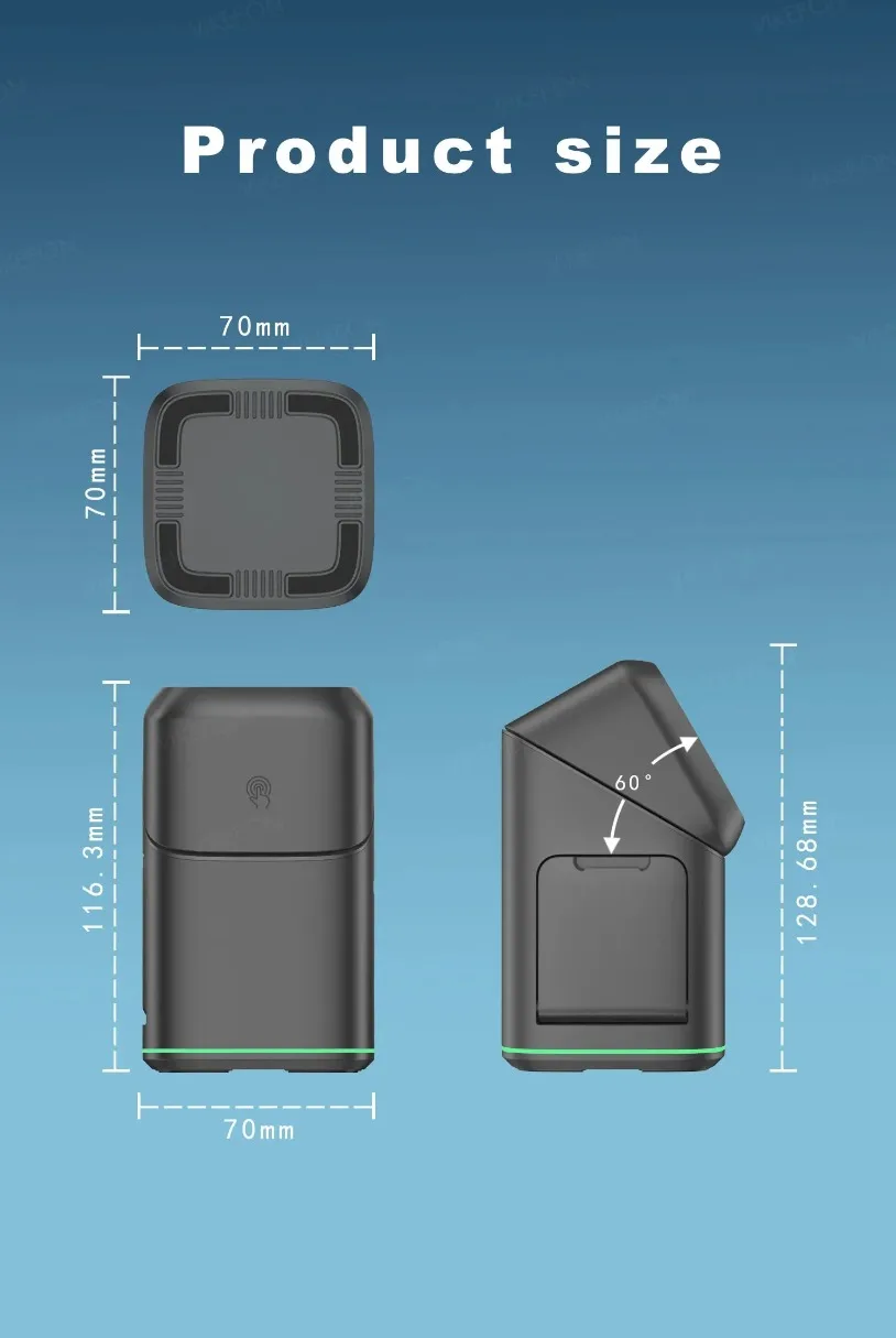 Cargador inalámbrico táctil giratorio 3 en 11.Entrada: 5V/3A, 9V/2A-3A2.Salida: 15W/10W/7,5W/5W/2,5W adaptable3.Frecuencia de trabajo: 127,7 KHz4.Color: gris/plata5.Compatibilidad: Soporte 7.Carga inalámbrica rápida de 5W para iPhone 16/15/14/13/12/11/X/8, admite carga inalámbrica rápida de 10W para Samsung S6edge+/Note5/S7/S8/S9/S9+/Note8/Note9, admite 5W carga inalámbrica ordinaria para otros teléfonos móviles con carga inalámbrica incorporada.6.Material ABS + PC, espejo de vidrio templado, puede cargar teléfonos móviles, auriculares y soportes al mismo tiempo.7.Función de detección de objetos extraños FOD, cuando el producto detecta objetos metálicos o magnéticos como monedas y llaves, la luz indicadora parpadeará continuamente y luego dejará de encender para garantizar la seguridad del producto.8. Protección integral (temperatura, cortocircuito, sobretensión, sobrecorriente)
