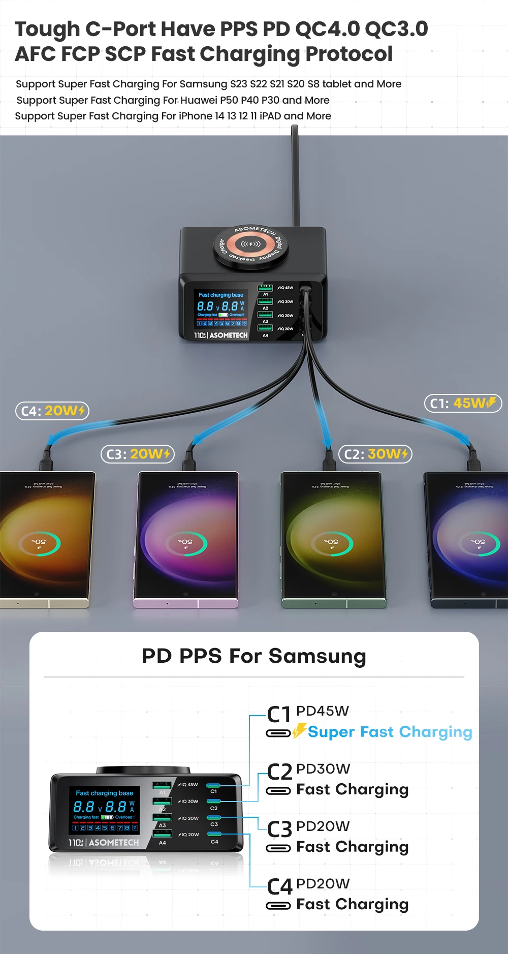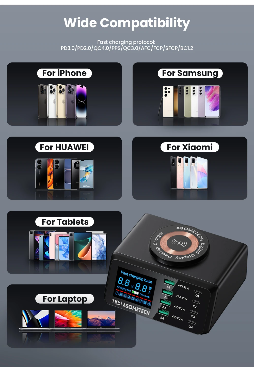 Protocolo de carga rápida: QC3.0 PD3.0 PD2.0 PPS AFC FCP BC1.2 PD45W PD30W PD27W PD20W PD18W