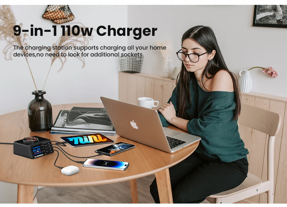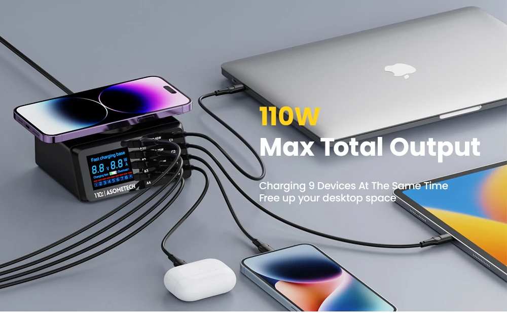 Cargador rápido USB 9 en 1 de 110 W