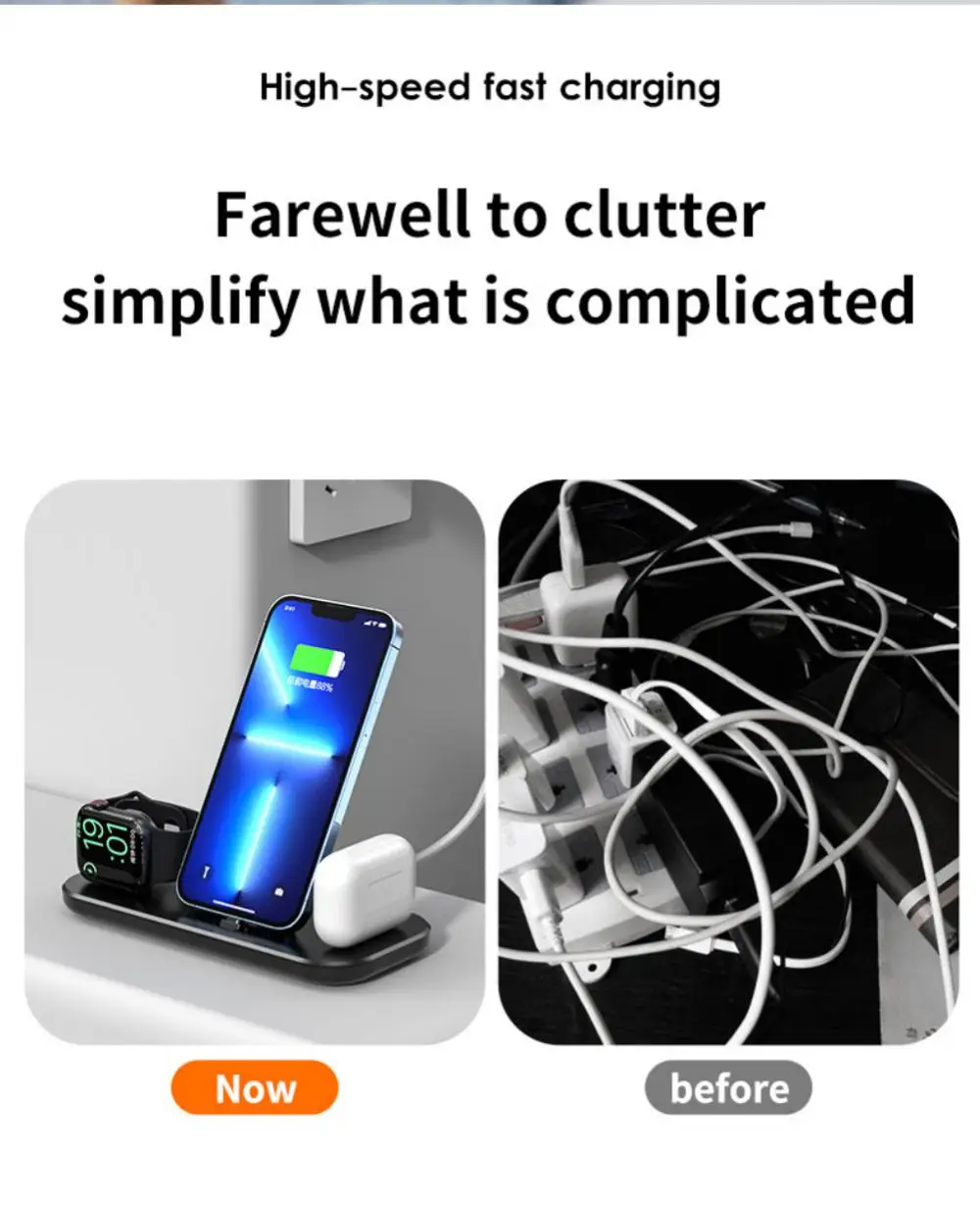 3.[Ampliamente utilizado]: La base de carga 3 en 1 se puede utilizar en el dormitorio, la cocina, la Oficina y en cualquier lugar que desee.