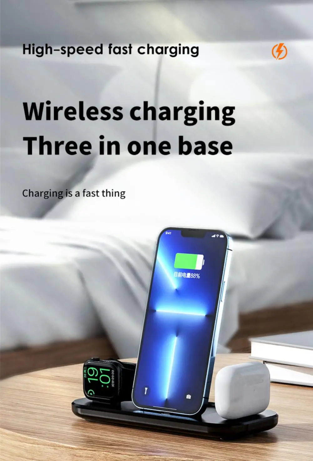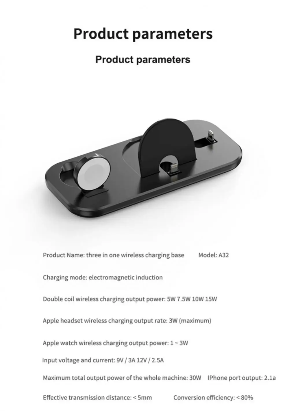 Comprar Cargador inalámbrico portátil para reloj, estación de carga plegable, multifuncional, 3 en 1, A32