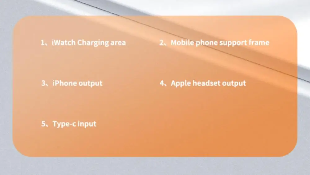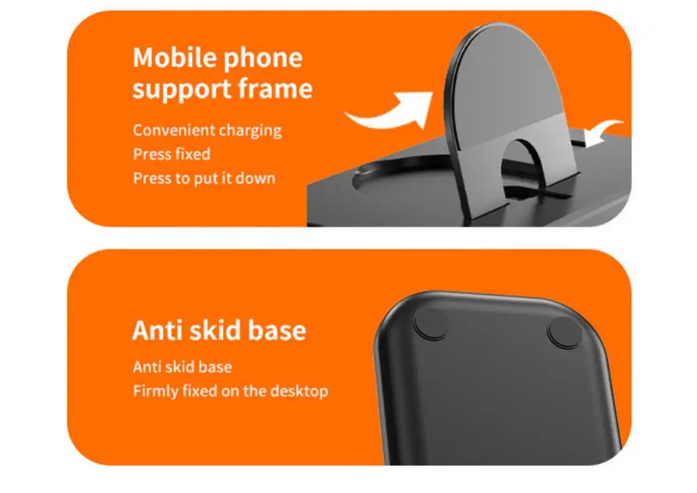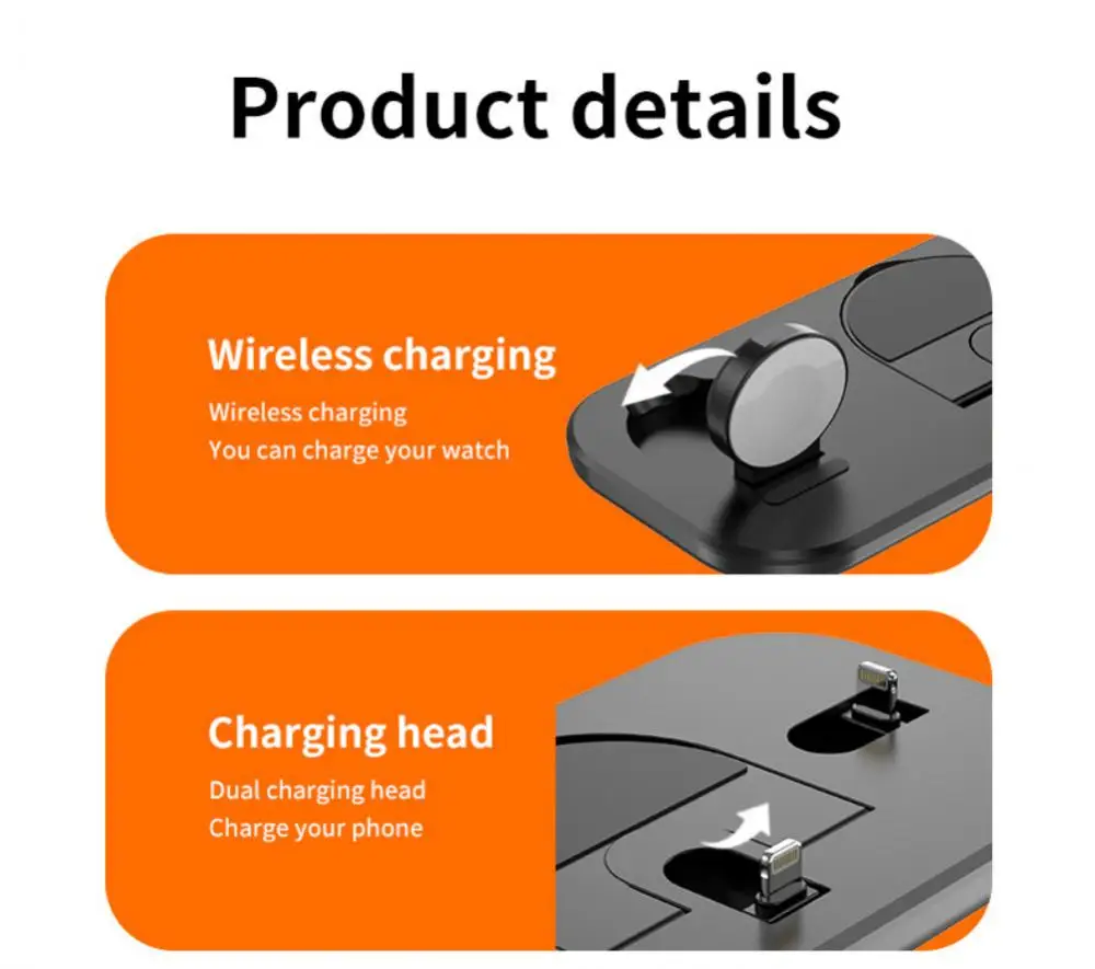 1.[ 3 EN 1 ] : estación de carga 3 EN 1 Para dispositivos con cable: Casa de carga compatible con reloj + + teléfono cargando simultáneamente.
