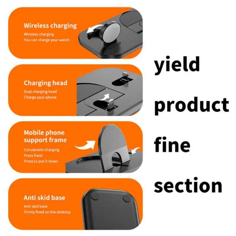A32 Portable 3 In1 Cargador inalámbrico Estación de carga plegable Base de carga multifuncional para reloj
