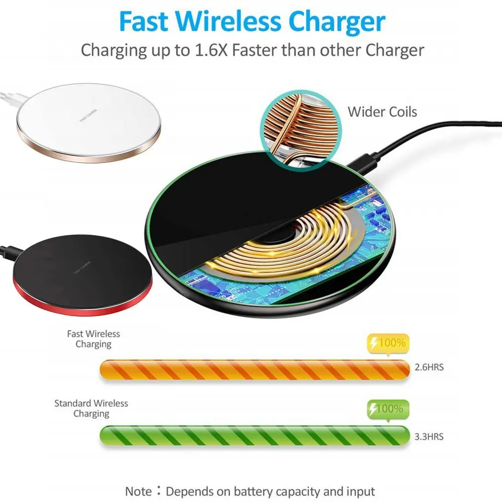 Comprar Cargador inalámbrico Qi de 10W para todos los teléfonos móviles con función de carga inalámbrica, almohadilla de base de carga inalámbrica rápida de inducción