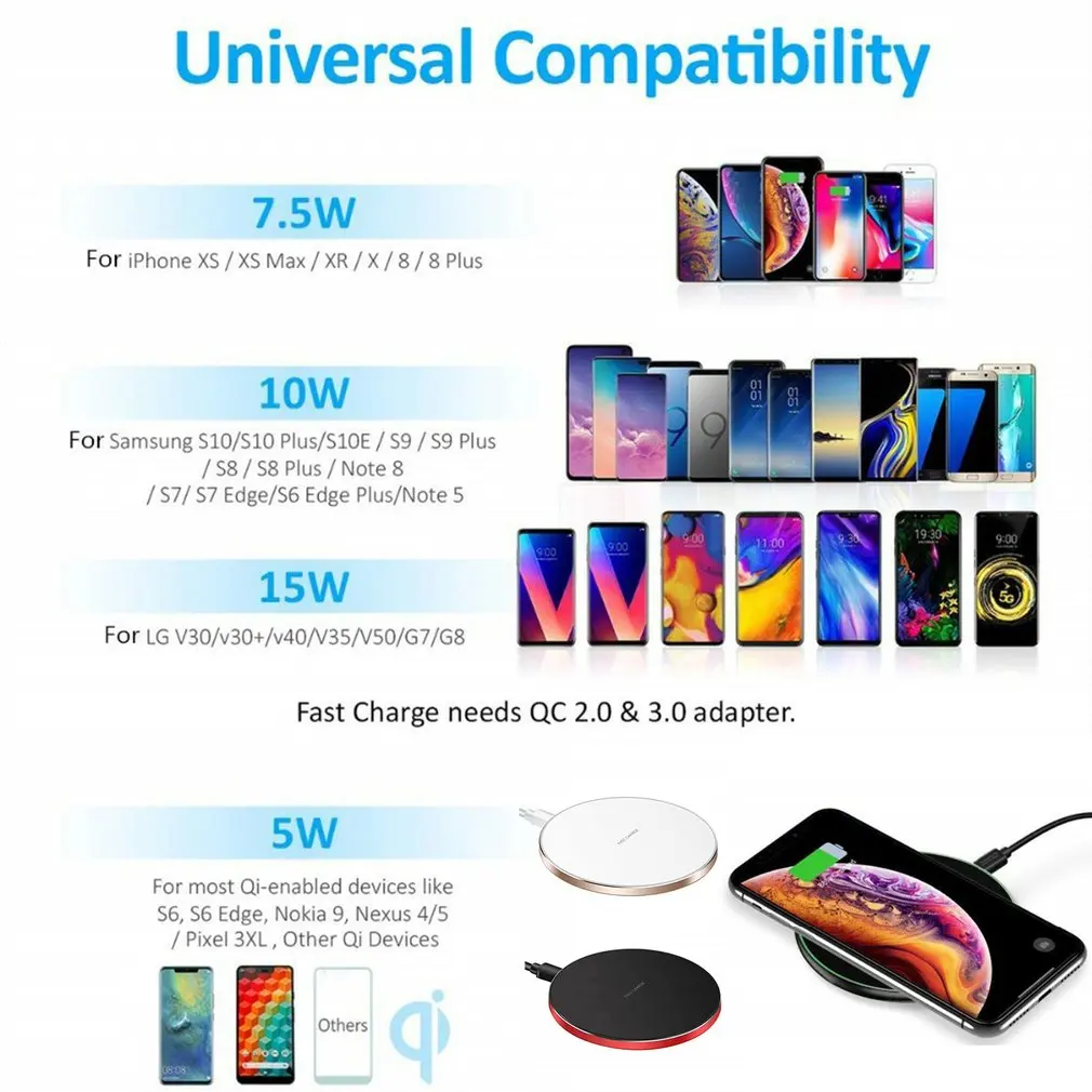 Este cargador inalámbrico es adecuado para la carga inalámbrica de todos los teléfonos móviles. Puede reconocer que su teléfono móvil es sensible y admite fundas de teléfono móvil dentro del rango de 5mm (0,2 pulgadas) y 4mm (0,16 pulgadas) es La mejor distancia de carga inalámbrica para cargar su teléfono móvil.