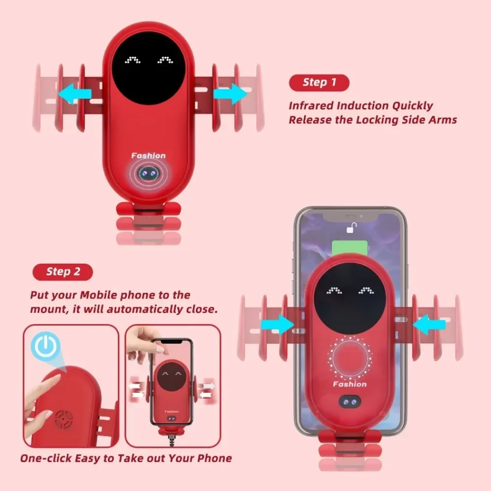 [Automatic Clamps & One Hand Operation] - This car wireless charger is equipped with automatic sensing technology. Two clips of the mount will automatically close and grip your phone when the phone is attached to the car holder; To release the phone, hand touch the top of the bracket, the clips will automatically open, then you can take the phone out.[Fast Charging & Adjustable View] Qi wireless car charger support secure fast charging and reliable protection for your cellphone. It could intelligently identify wireless fast charging device and smartly adjust power among 5W/7.5W/10W/15W/20W/30W. Note: We recommend you use QC3.0 car charger adapter (NOT INCLUDED) for fast charging, otherwise it may cause intermittent charging.360-degree rotating cradle provides flexible choice of watching your phone or GPS while driving. That means there will be no blocked vision and you can get a perfect viewing angle with the car wireless charger mount.[Wide Compatibility] - Owing to the flexible splint and hook, the screen size of cell phones could support nearly all Qi-enabled phones from 4.5 to 6.5 inches such as Mate 20Pro,P30Pro, Samsung Galaxy S10/S10+, S9/9+, S8/8+, Note9, Note8 , iPhone Xs/Xs Max/XR/X/8/8 Plus and more. (Advice use QC 2.0/3.0 adapterand included cable for fast charging.)Specification:Input interface: Micro USBInput: QC3.0