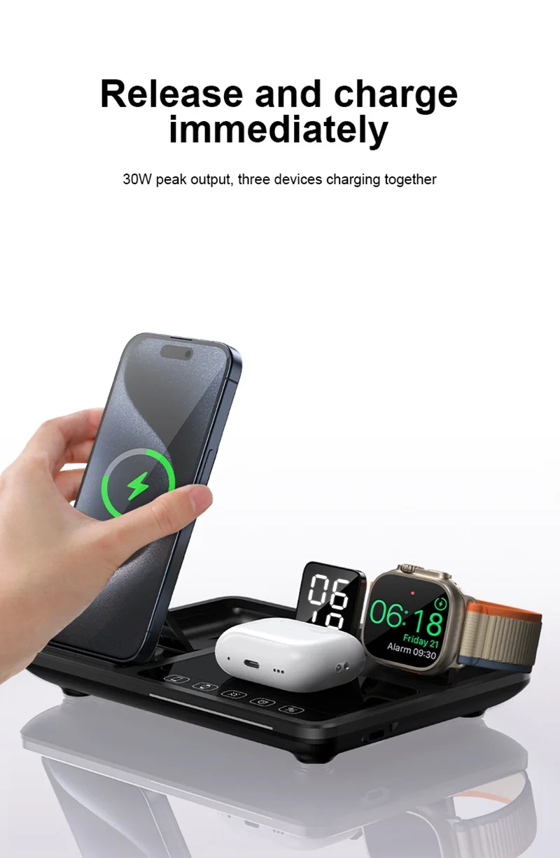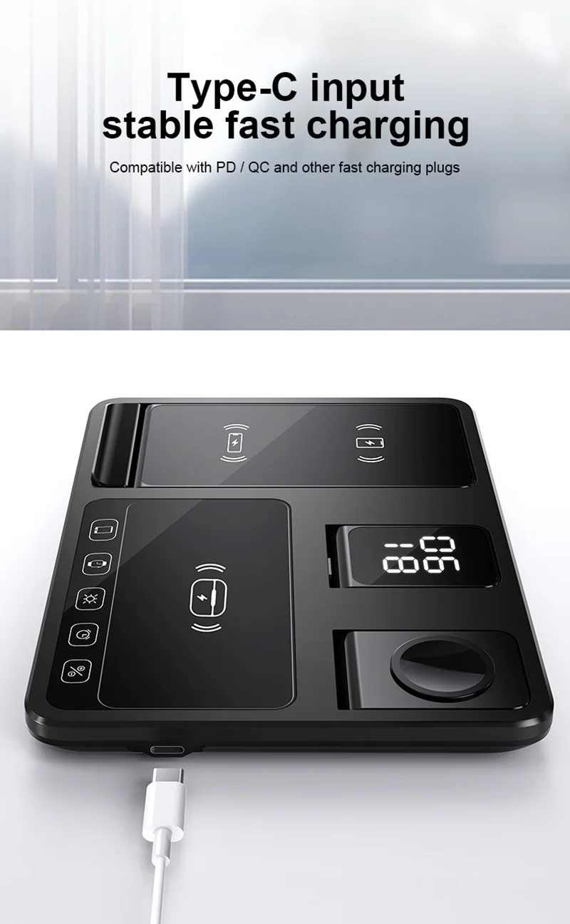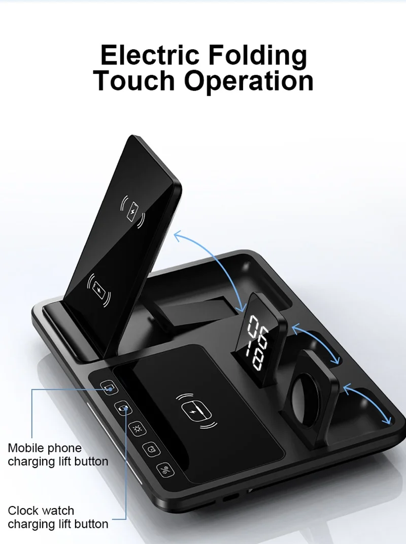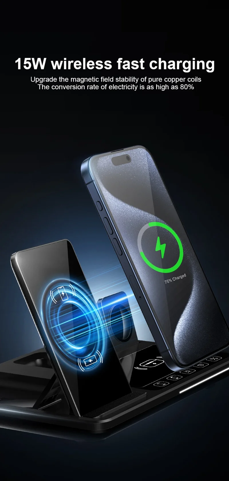 Soporte de cargador inalámbrico con reloj 4 en 1 para Iphone 15 14 13 12 11 Pro Max 30W, estación de carga con Control táctil para Airpods Apple Watch