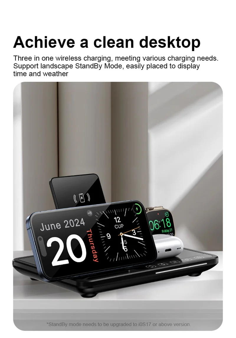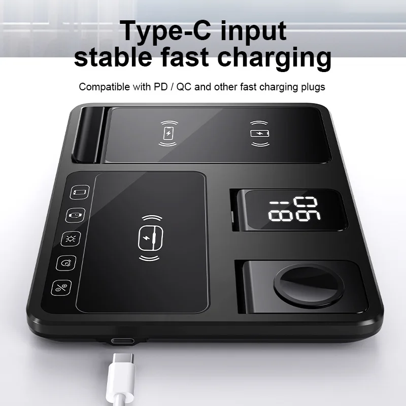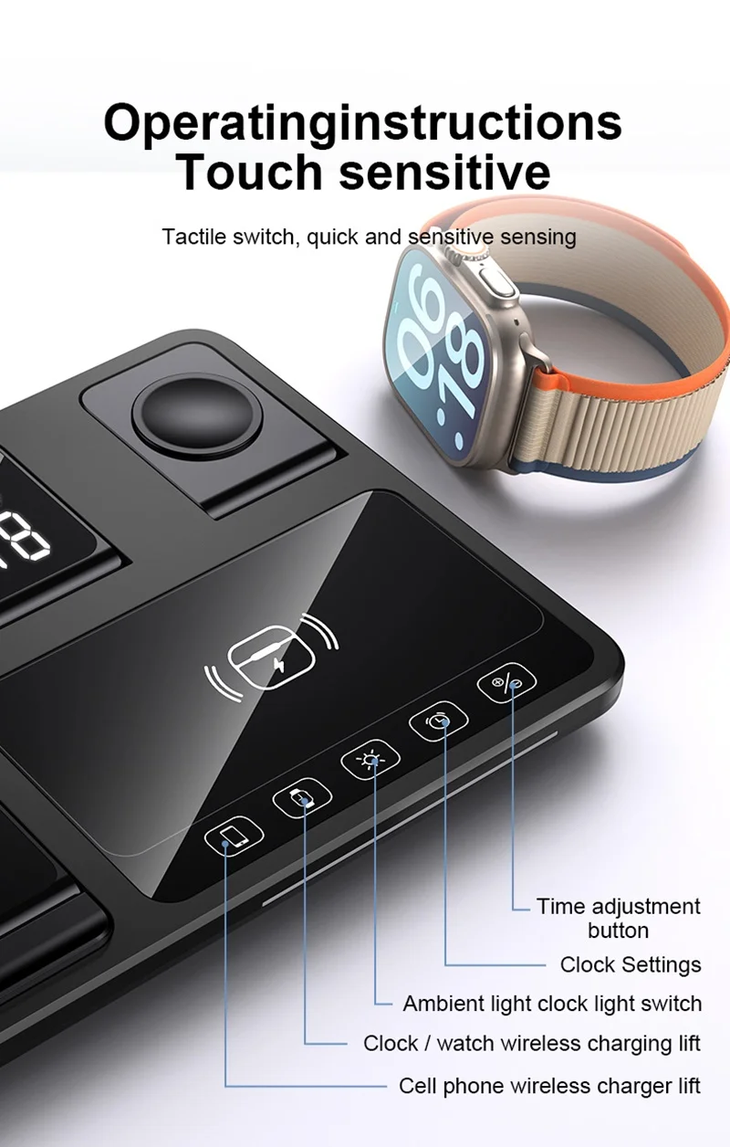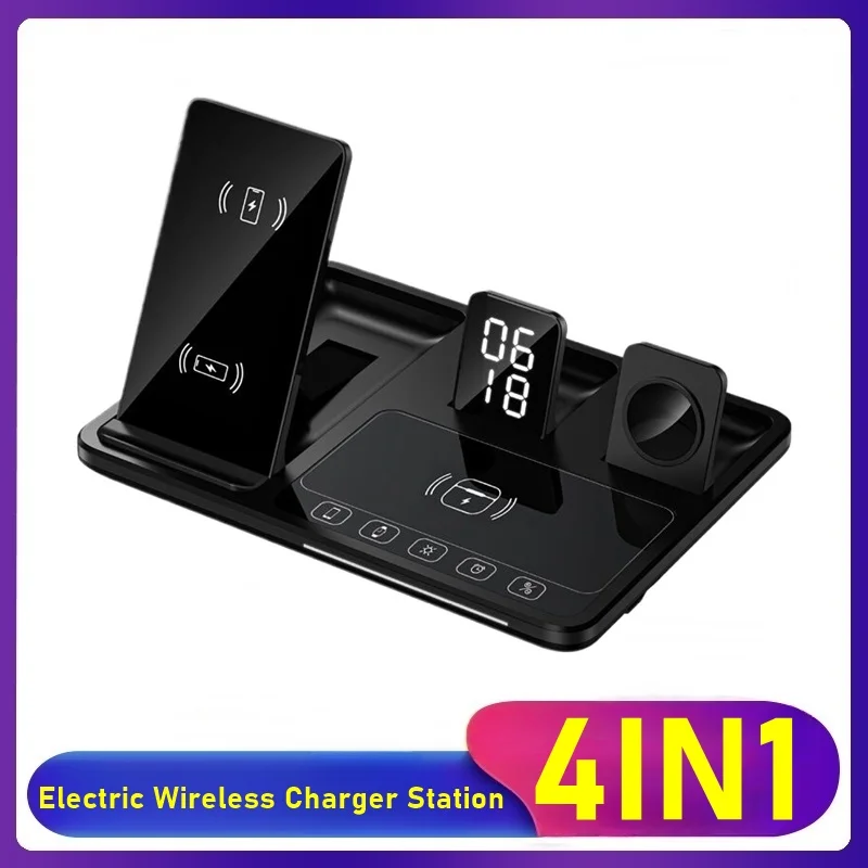 Soporte de cargador inalámbrico con reloj 4 en 1 para Iphone 15 14 13 12 11 Pro Max 30W, estación de carga con Control táctil para Airpods Apple Watch