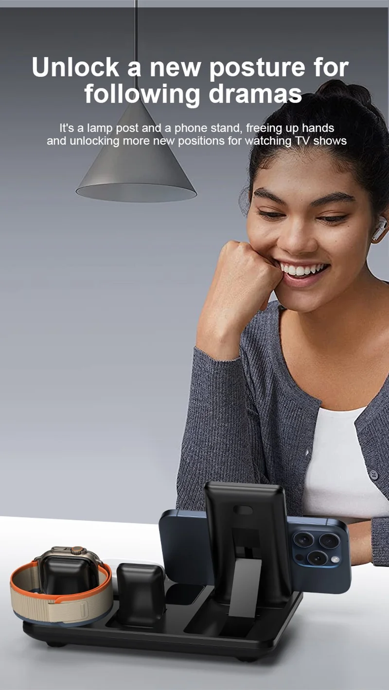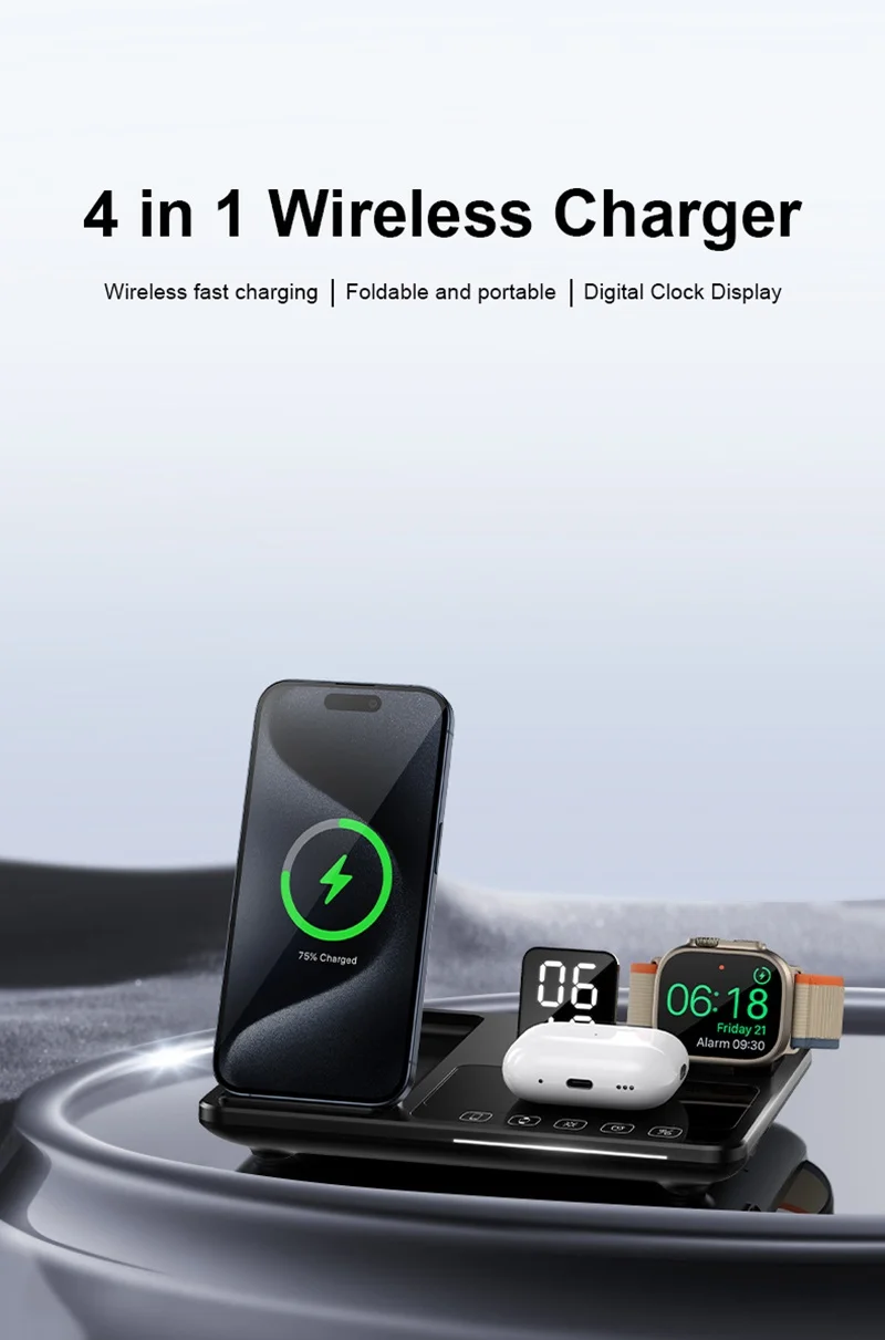 Comprar Cargador inalámbrico de reloj 4 en 1 para Iphone 16, 15, 14, 13, 12, 11 Pro Max XS, estación de carga automática para Airpods Pro Apple Watch Ultra