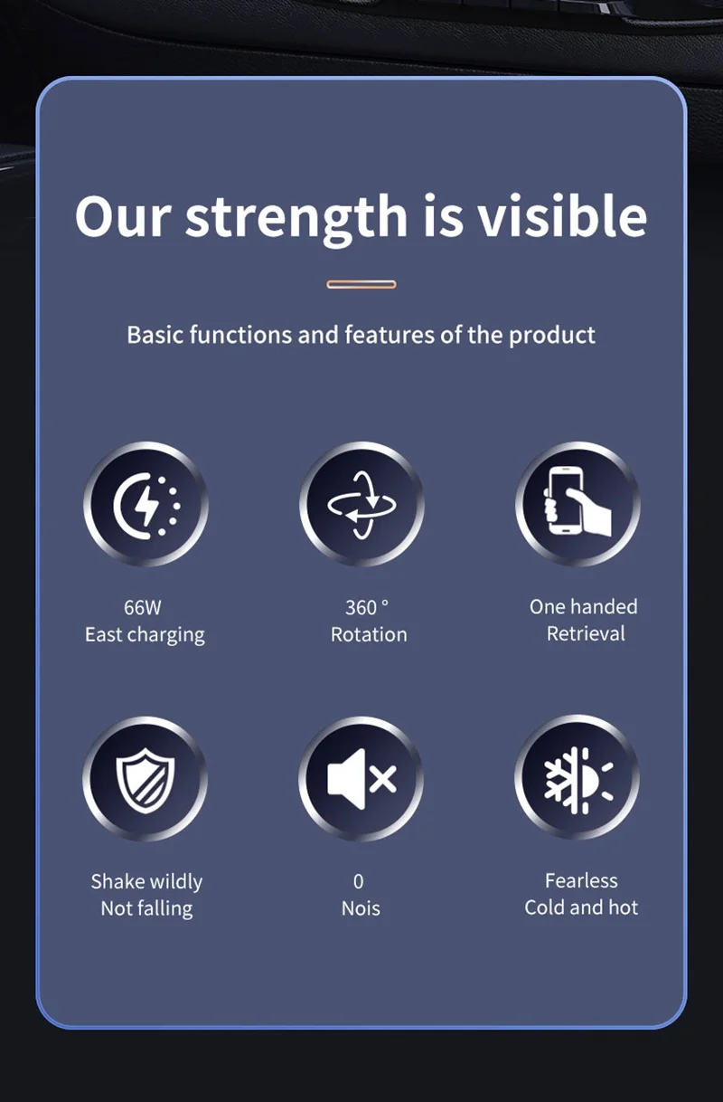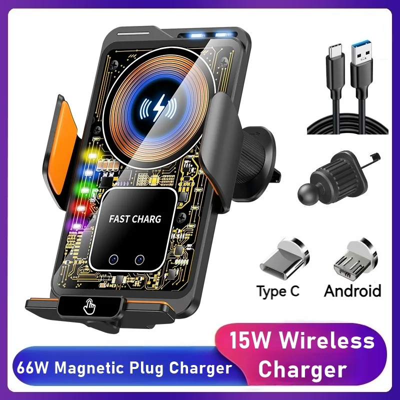 Comprar Cargador inalámbrico de teléfono para coche de 15W, soporte 2 en 1, soporte de carga con enchufe magnético de 66W para Iphone 16, 15, 14, 13, 12 Pro Max, Samsung en soporte para coche