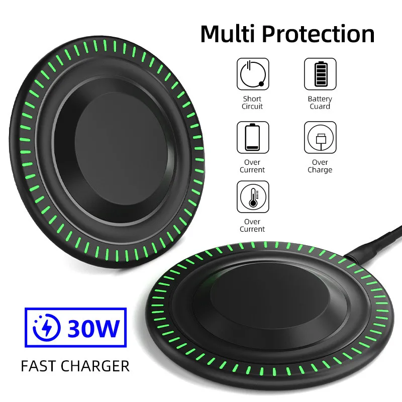 Comprar Cargador inalámbrico para teléfono móvil, base de carga rápida por inducción, 30W, para iPhone 15, 14, 13, X, Samsung, Xiaomi