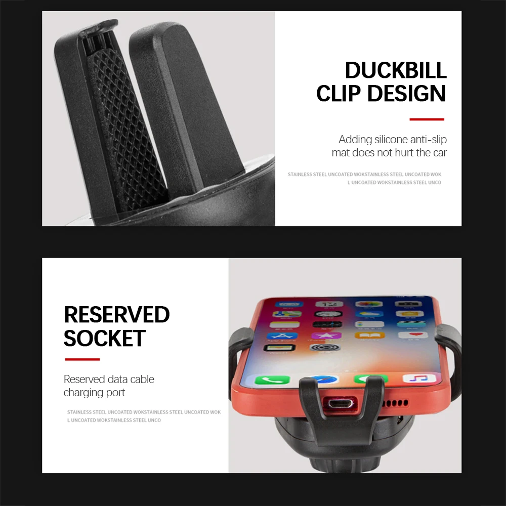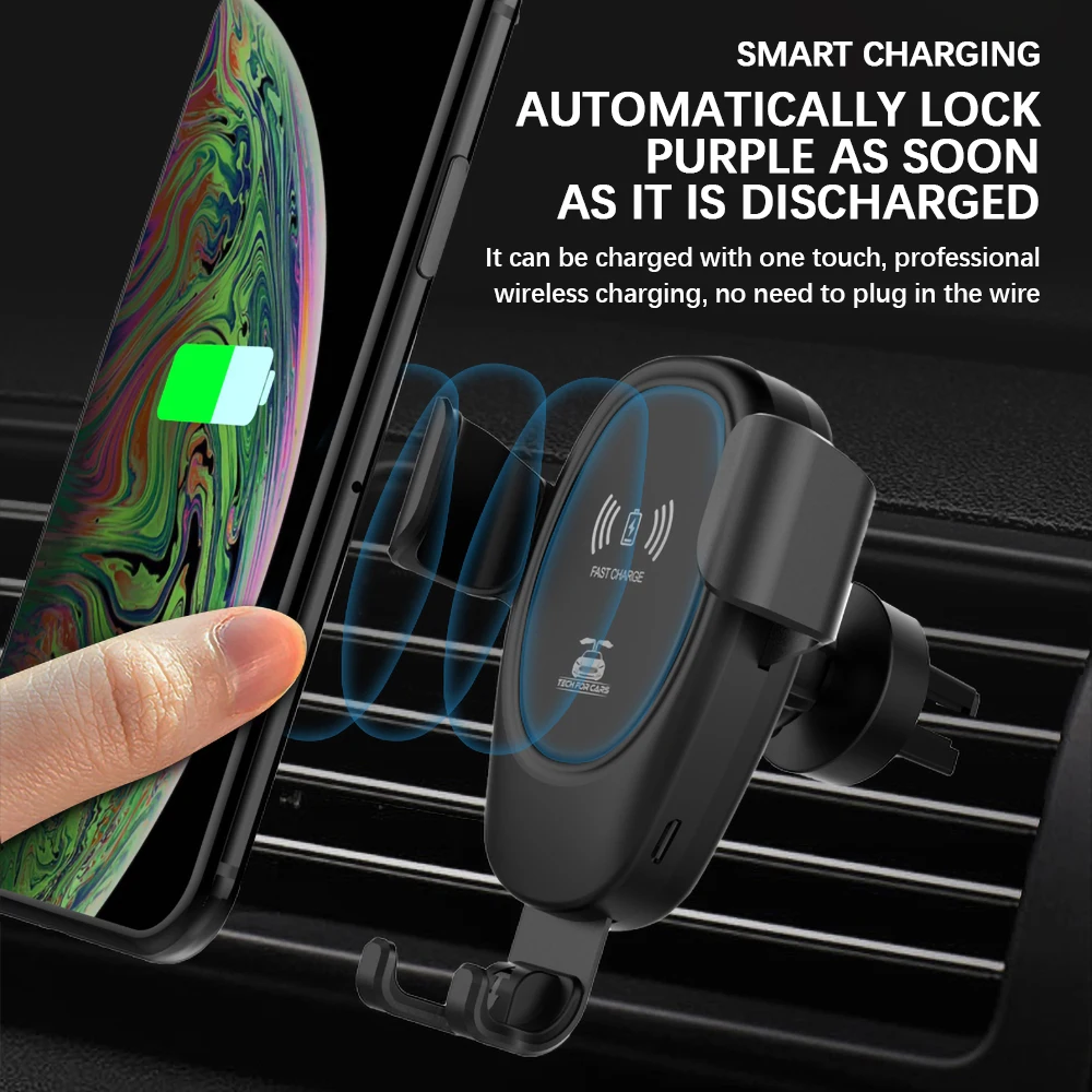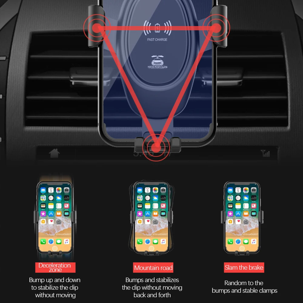 Cargador de coche inalámbrico rápido de 1,10 W, fabricado con los últimos estándares, incorporado el último chip inteligente, el cargador inalámbrico de teléfono móvil para coche puede proporcionar sobrecorriente, sobrecalentamiento, protección contra sobretensión y cortocircuitos para garantizar la seguridad de la carga.