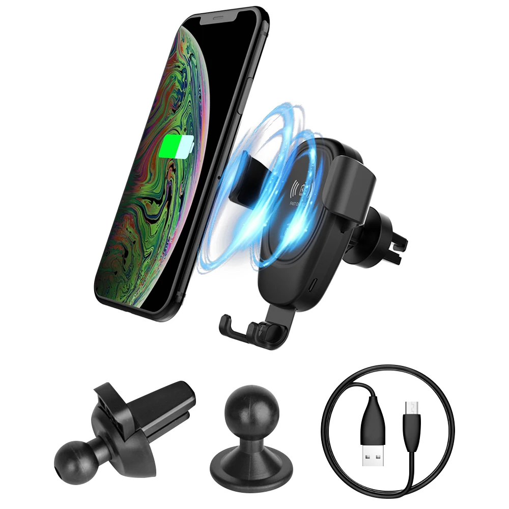 LISTA DEL PRODUCTO: Soporte de teléfono de carga inalámbrica + clip de boca de aire acondicionado + base de la consola central + cable de carga + manual